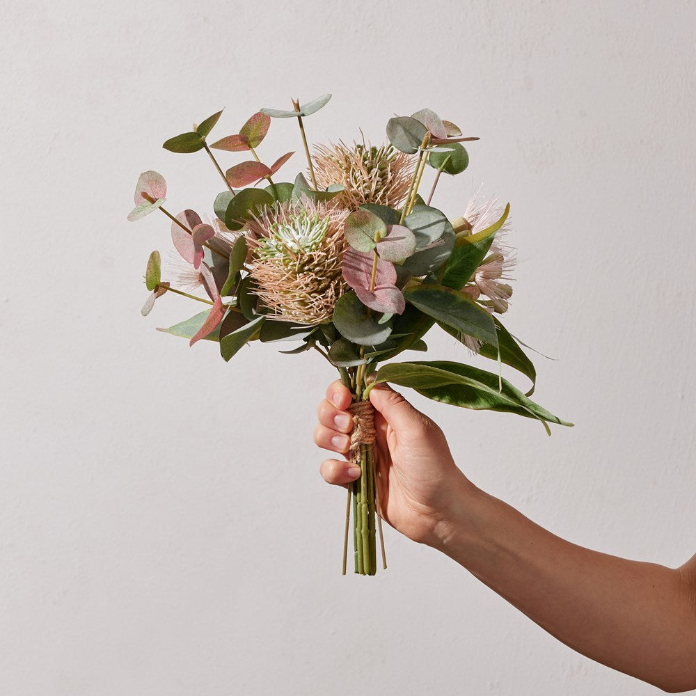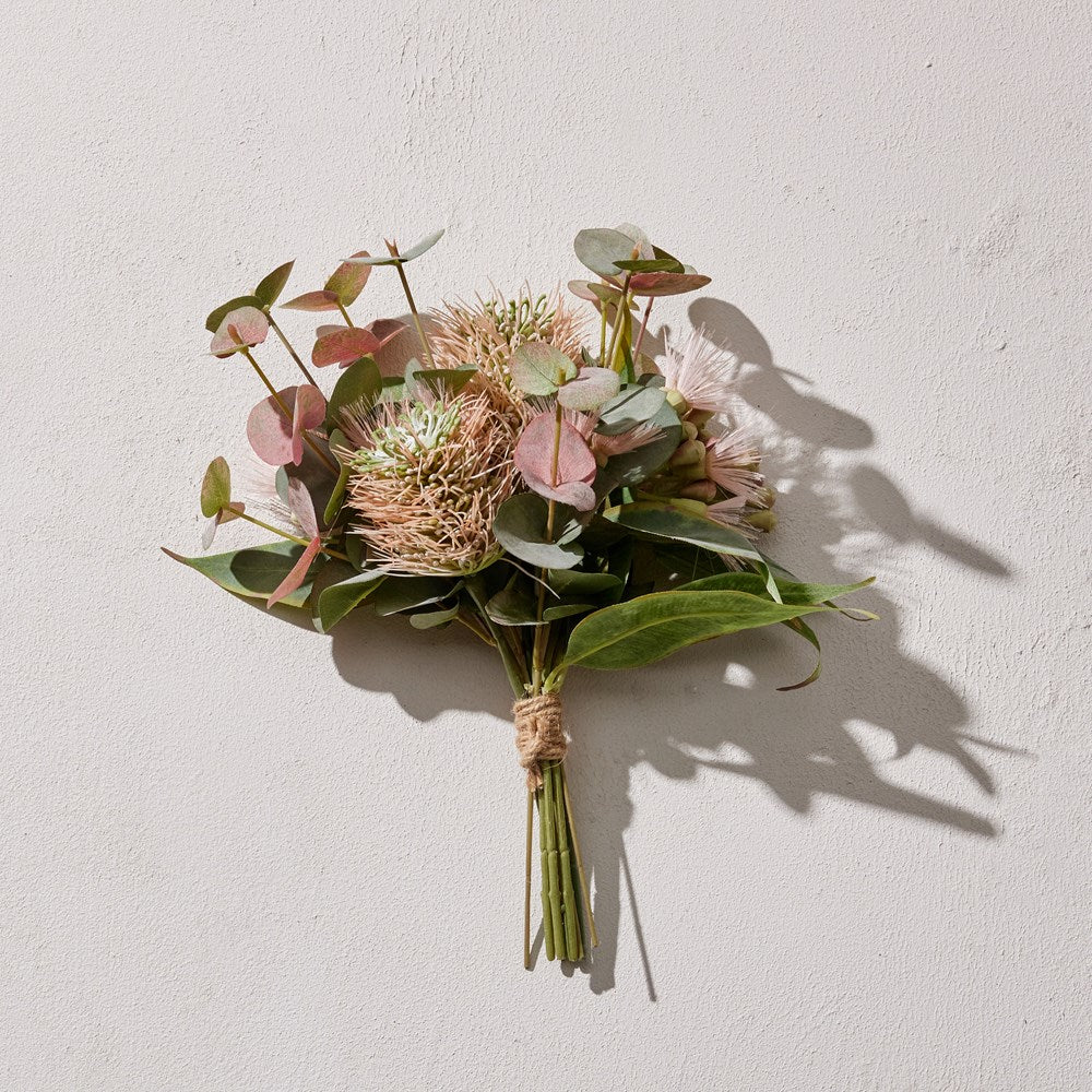Add a touch of botanicalcharm to any space with our faux Protea Hybrid Mix Bouquet. This bouquetis made up of beautifully flocked and stiffened faux flora and foliagethat is as close as possible to the real thing. Place in a vaseon your counter top ordining table, orlay amongst your serveware for an imaginative tablescape.