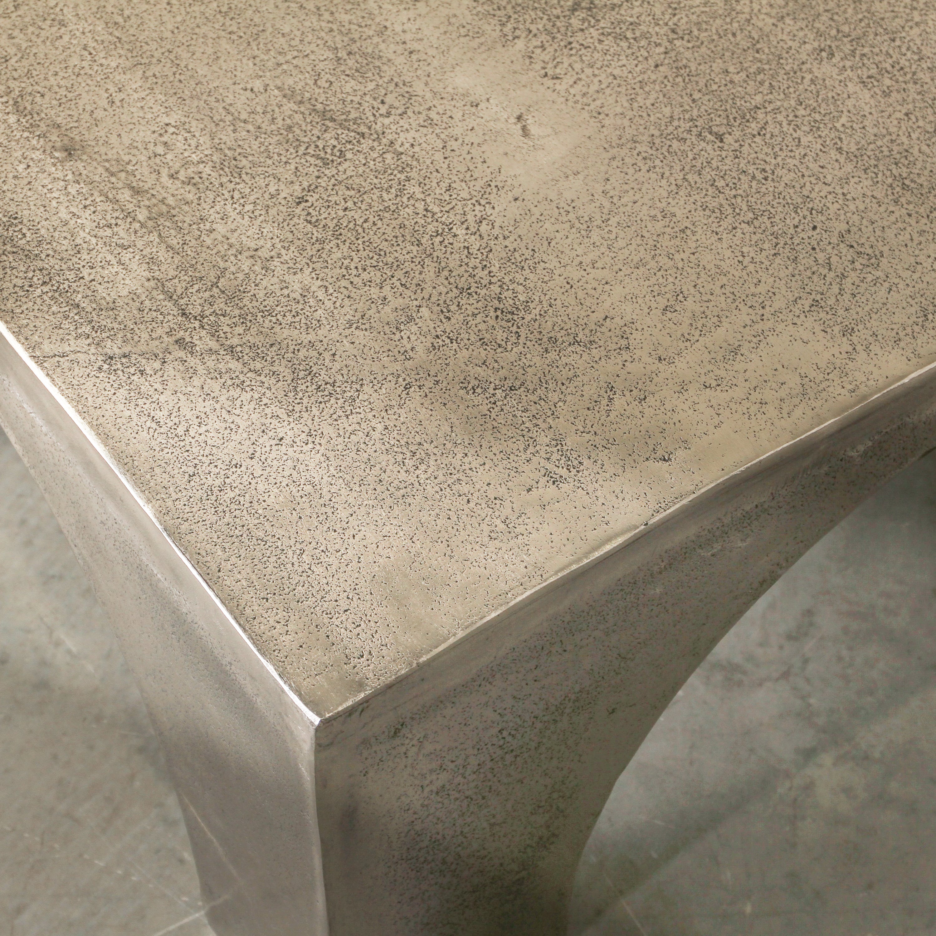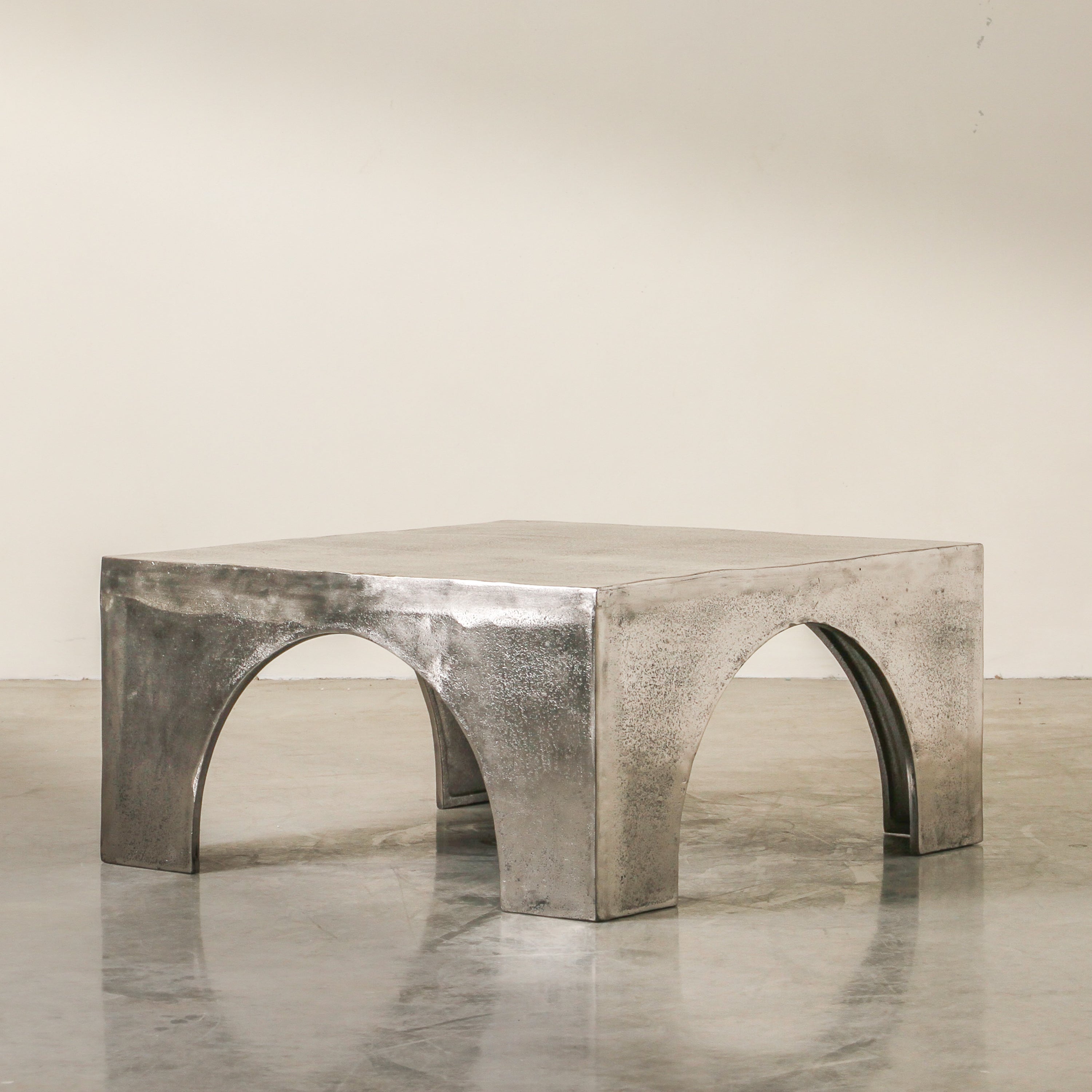 Inspired by architectural repetition and form, the Ravel Coffee Table is cubic and grounded, yet softened by gently arched cut-outs on each side. The antique brass finish gives it a quiet warmth, catching the light with muted, brushed reflections. There’s a rhythm to this piece—a balance between mass and movement. Perfect at the centre of a room with clean-lined sofas or textured armchairs. Layer with stacked books, a ceramic vase, and a candle to echo its sculptural depth without overwhelming its form.