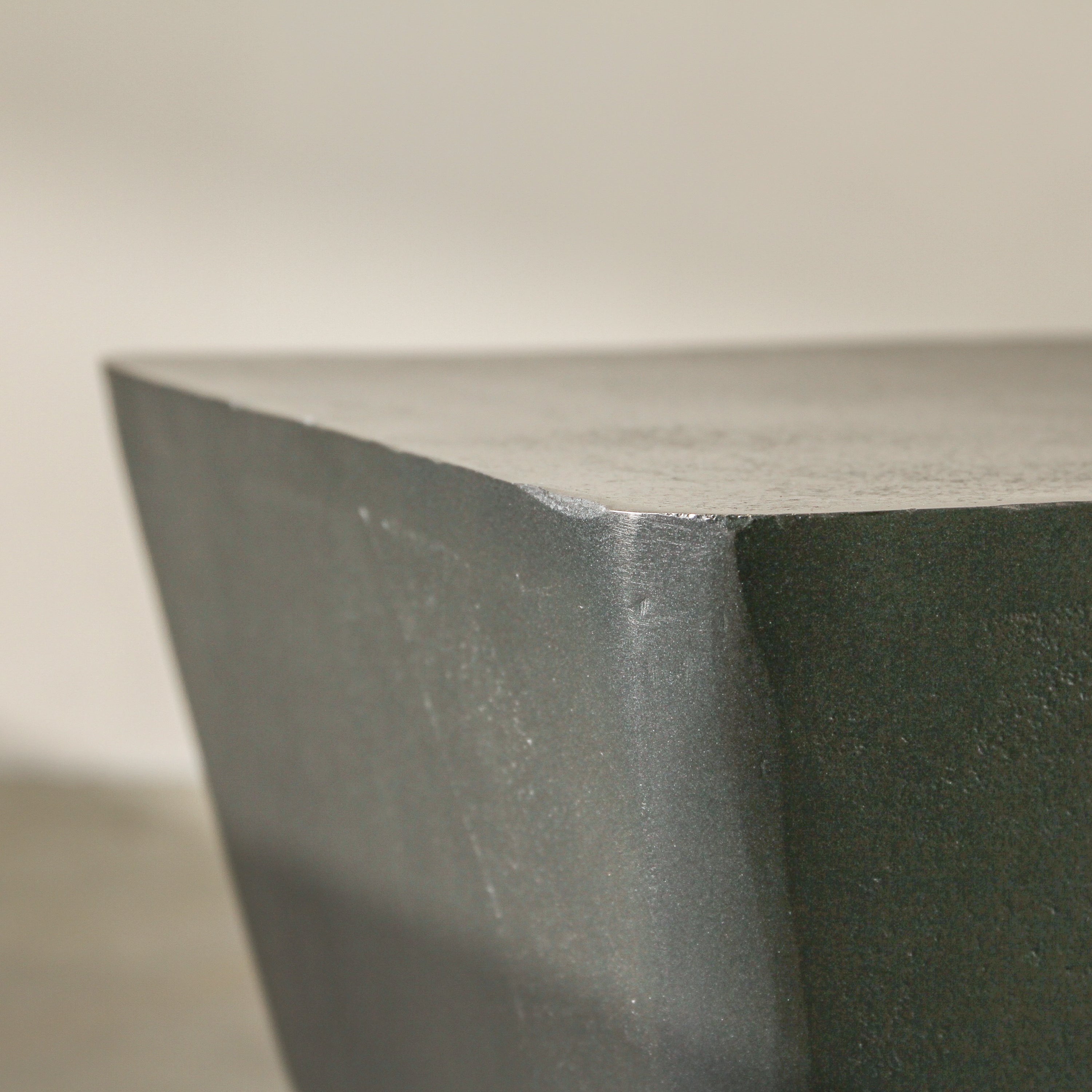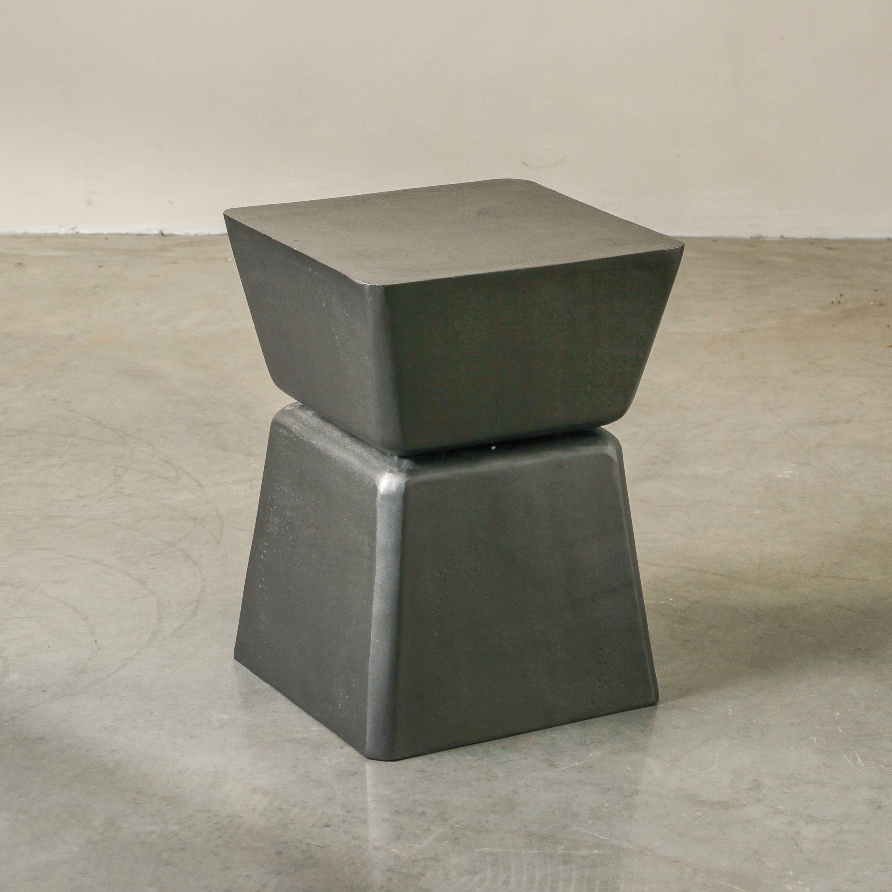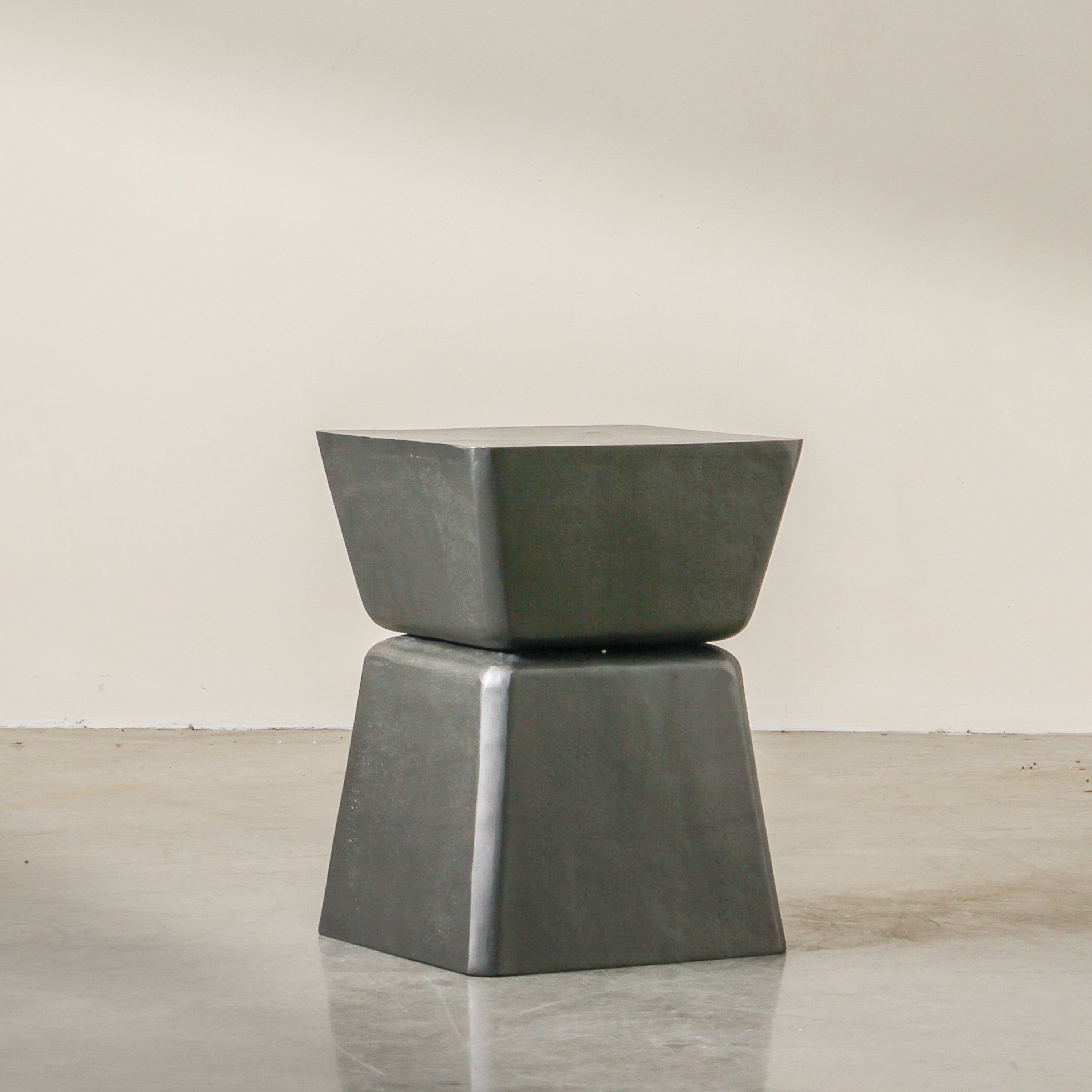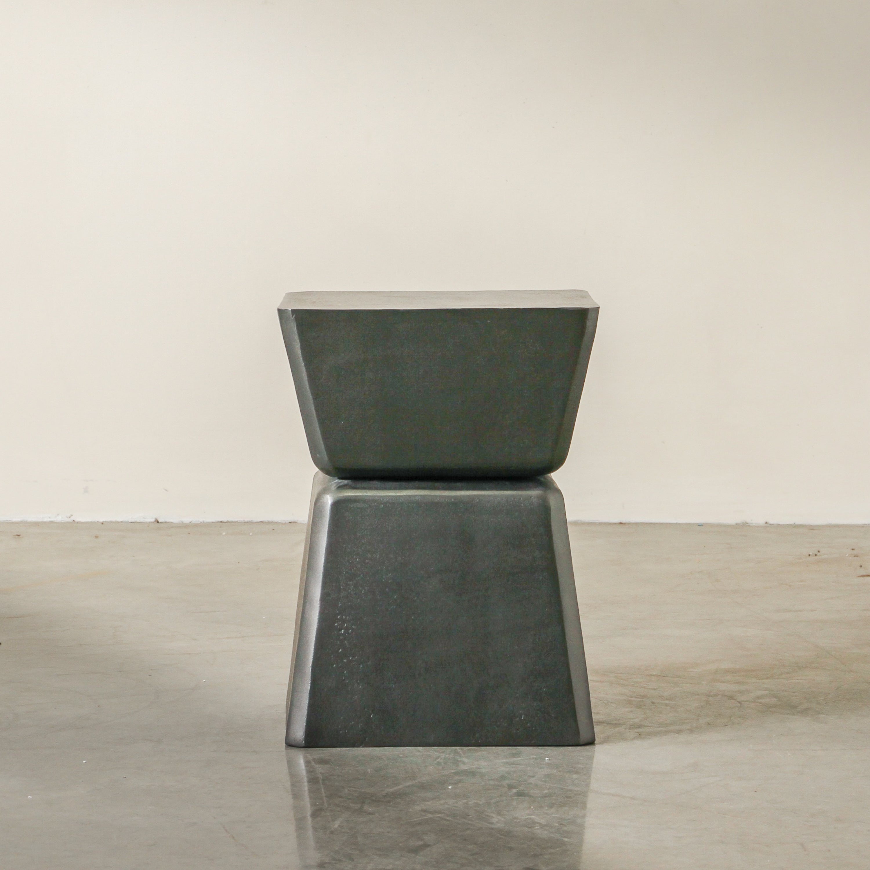 The Relic Side Table is sculptural and grounding—a piece that feels as though it was unearthed or created by an artist. Its silhouette is gently tapered at the middle with a curved edge that softens its strong form. The dark lead-toned finish enhances its sense of weight and presence. Ideal in minimalist or tonal interiors. Place it beside clean-lined seating and style with something simple but tactile—think hand-thrown pottery or a small stack of worn books.