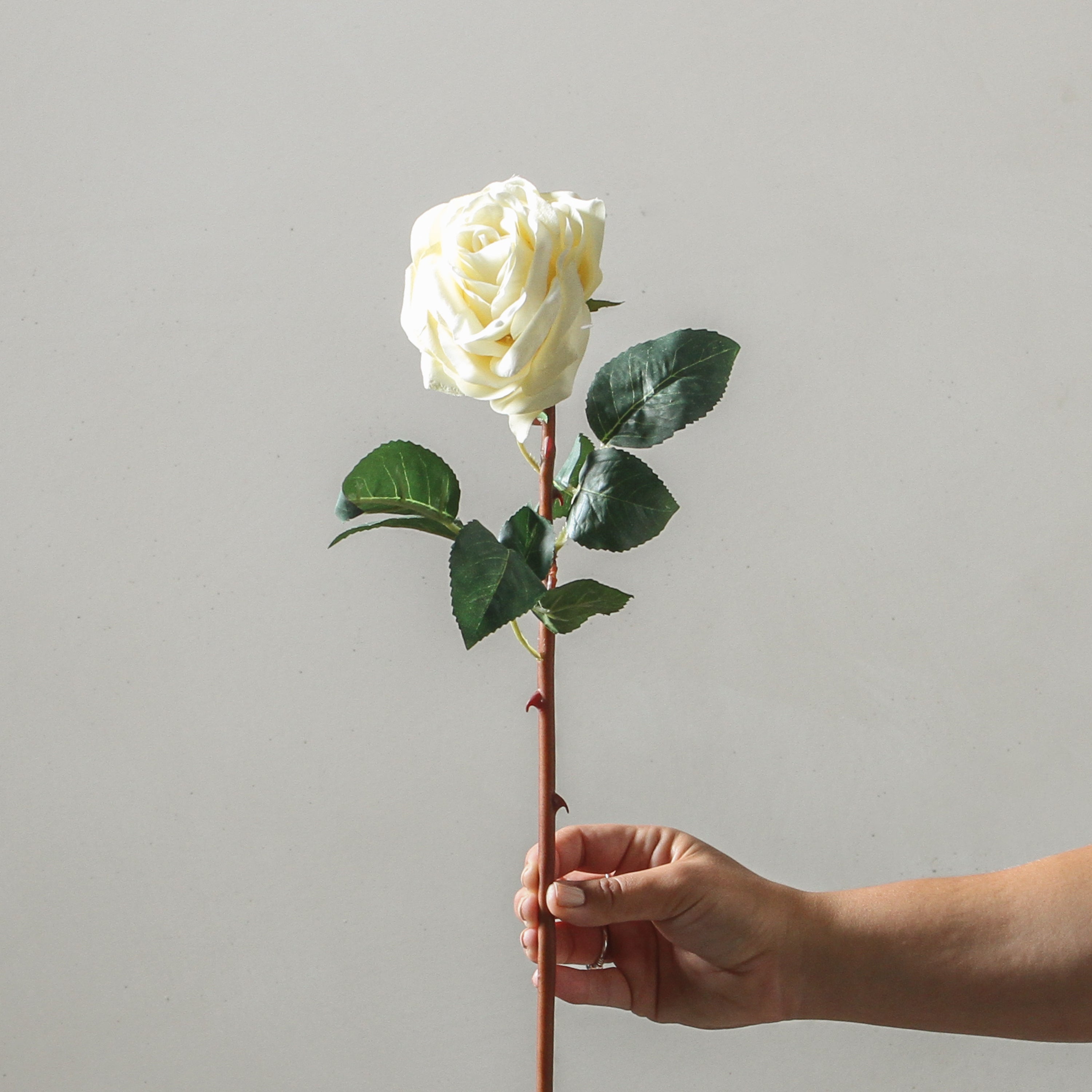 Our white Rose embodies a sense of purity and sophistication, showcasing layers of soft petals that replicate the delicate beauty of fresh blooms. The clean white hue adds a refreshing touch to any space, making it a versatile choice for various decor styles.
