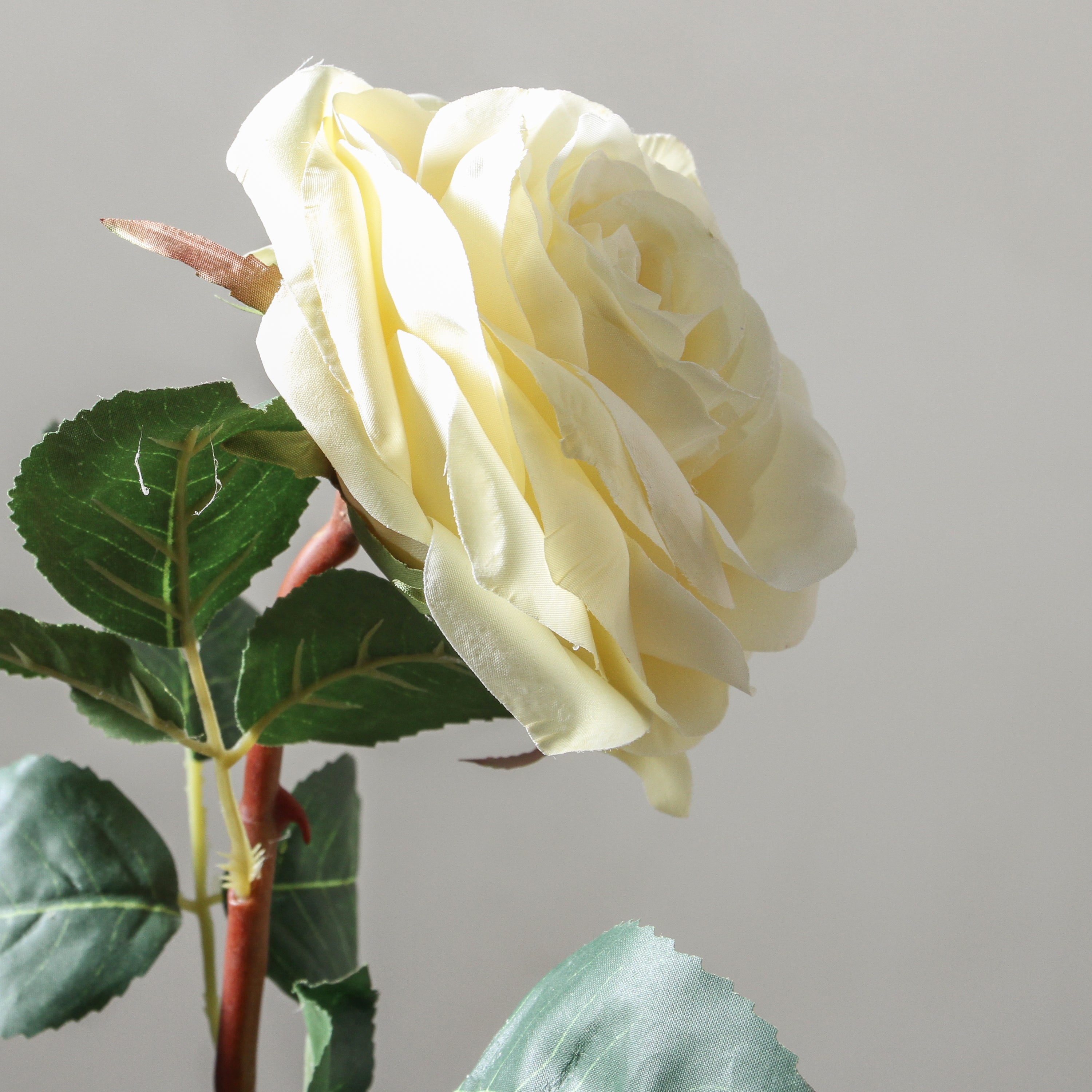 To style, arrange several stems in a simple glass vase for a minimalist look, allowing the roses to take center stage. For a more opulent display, mix the white roses with lush greenery and other soft-toned flowers, creating a stunning bouquet that can enhance a dining table, coffee table, or special event setting. Incorporating elements like textured fabrics or elegant candle holders can further elevate the arrangement, adding a cozy, inviting atmosphere to your home. These white roses serve as a timeless addition, bringing a sense of tranquility and beauty to your interior.