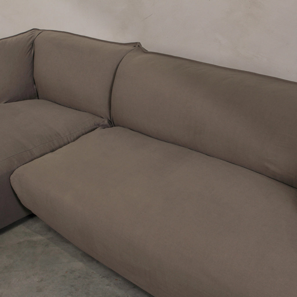 This 3 seater sofa includes a chaise component, available in both left- or right-hand configurations, offering flexibility to suit your layout and lifestyle. Whether you're stretching out solo or sinking in with a good book, the Serene Sofa is made for slow living and shared stillness.