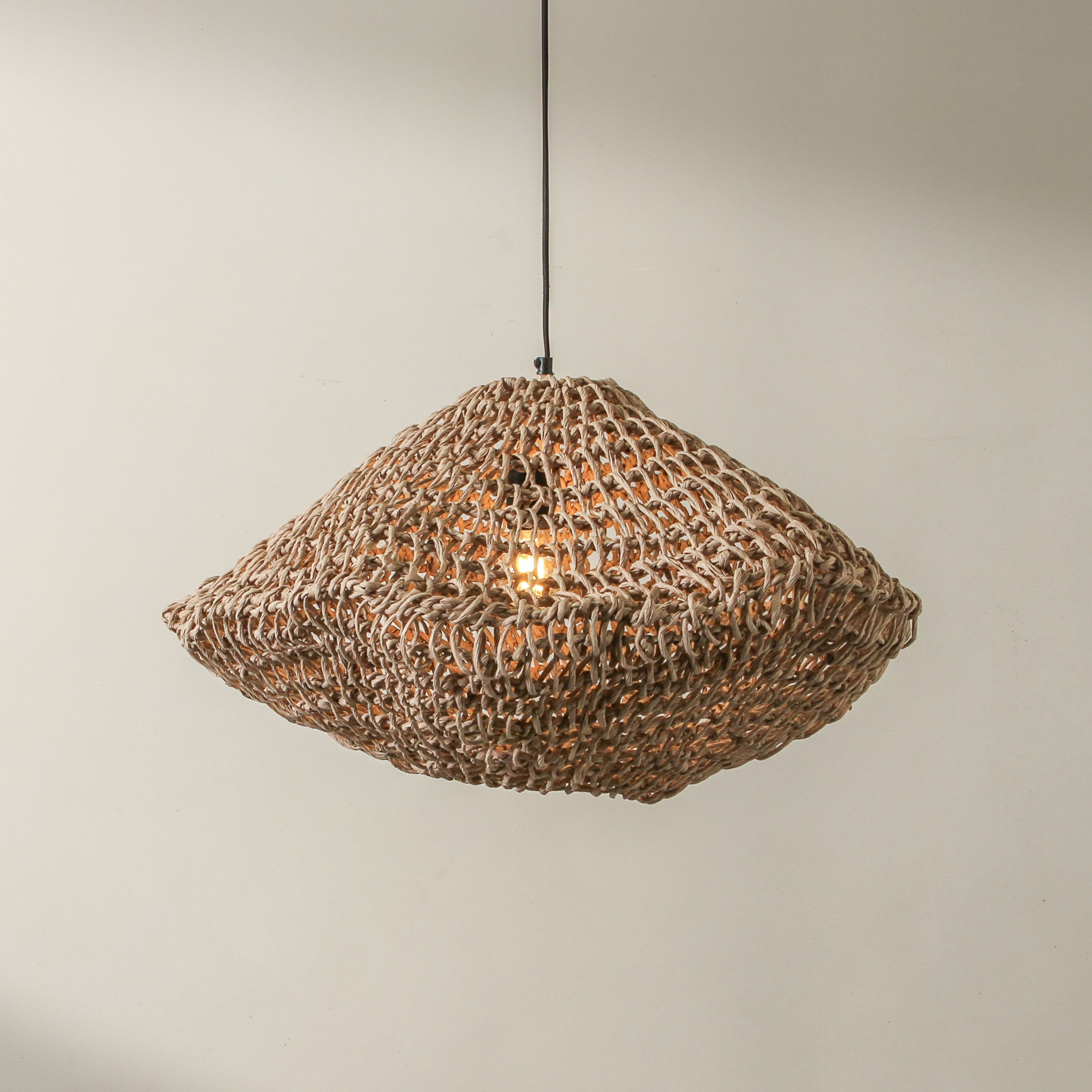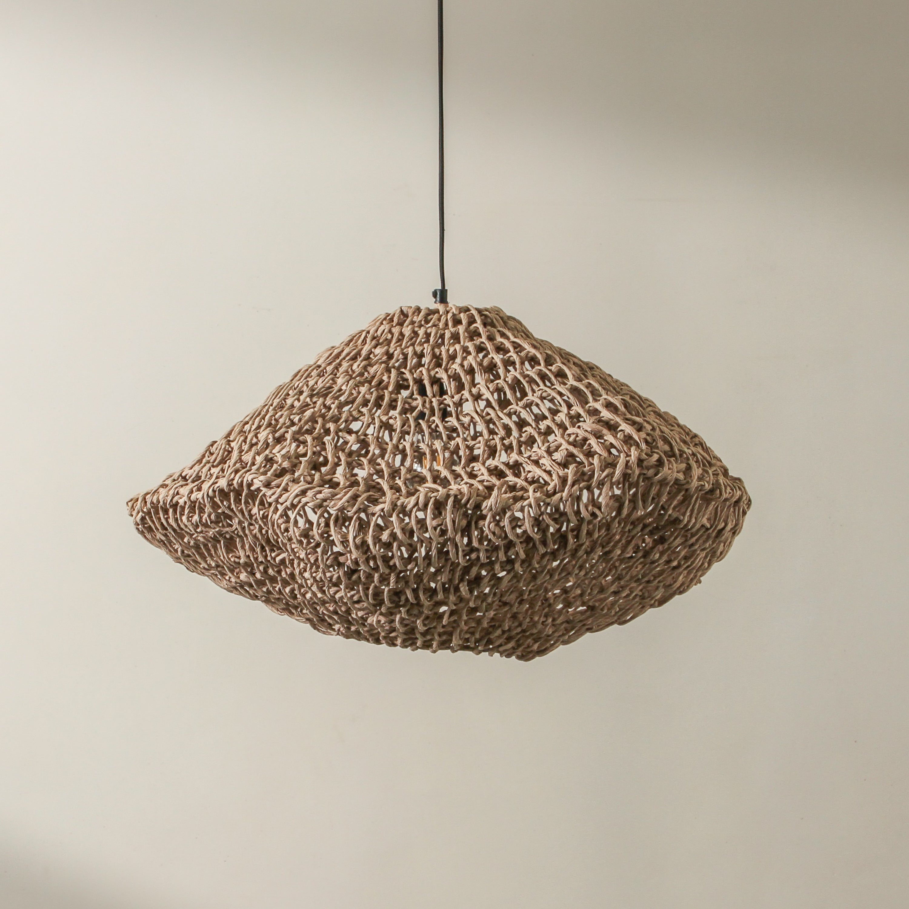 With its wide, elliptical shape and loosely cloud-like structure, the Stratus Pendant floats with a sense of gentle drift. It softens a space both visually and atmospherically — perfect above a round dining table, over a relaxed seating area, or in a nursery where serenity is key. Its handmade weave diffuses light in a way that feels both sculptural and soft.