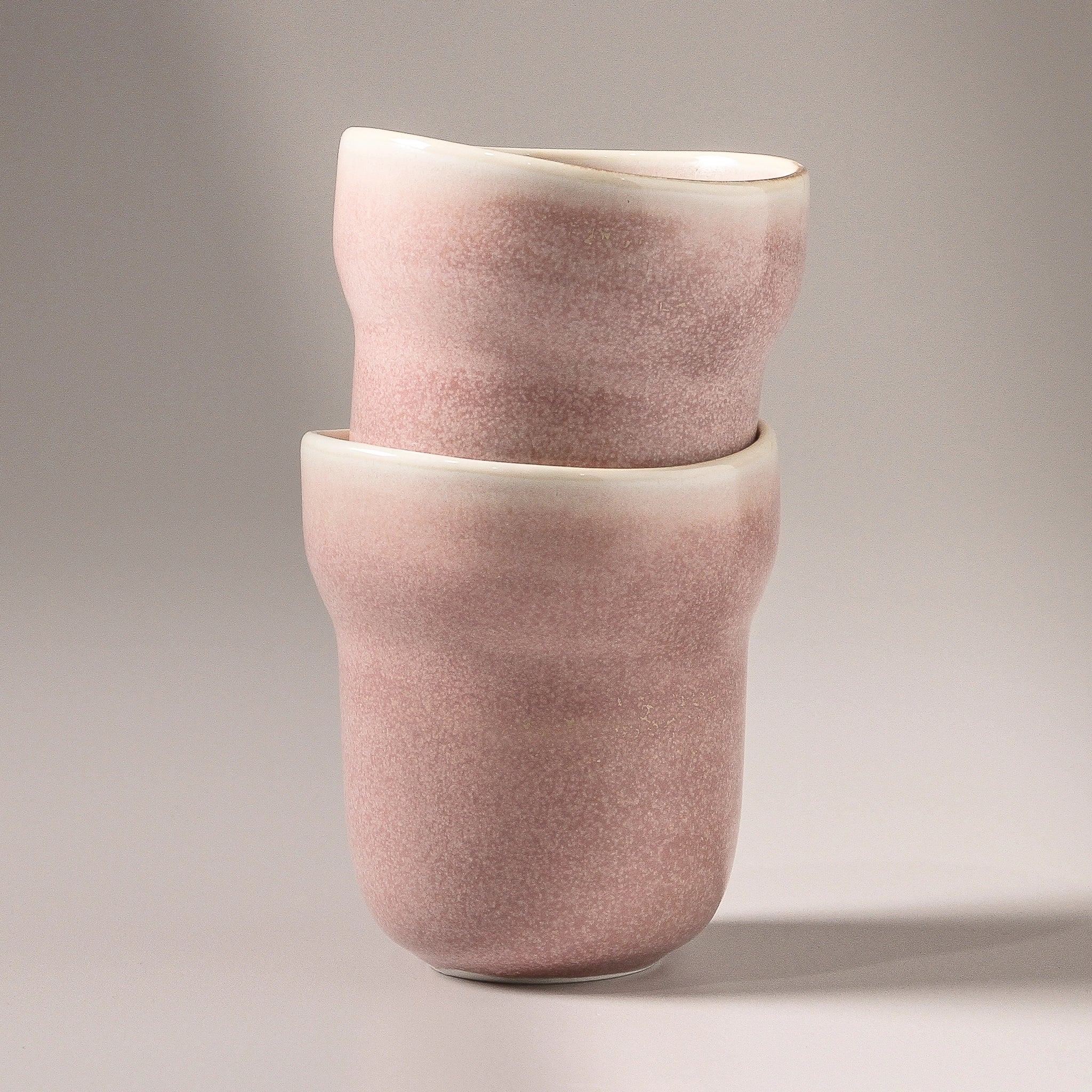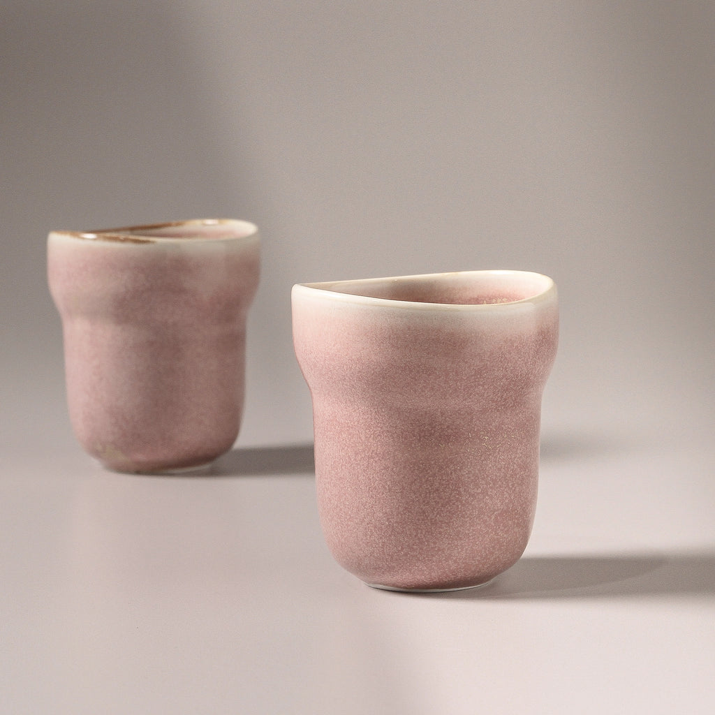 The Suiki Cup returns in a new, softly muted hue — a gentle dusty pink washed with a reactive glaze that settles into delicate, golden-rust speckles. Its surface feels quietly organic, shaped by subtle variations that honour the hand of the maker. The result is a cup that feels tender and tactile, refined yet grounded in artisanal simplicity.