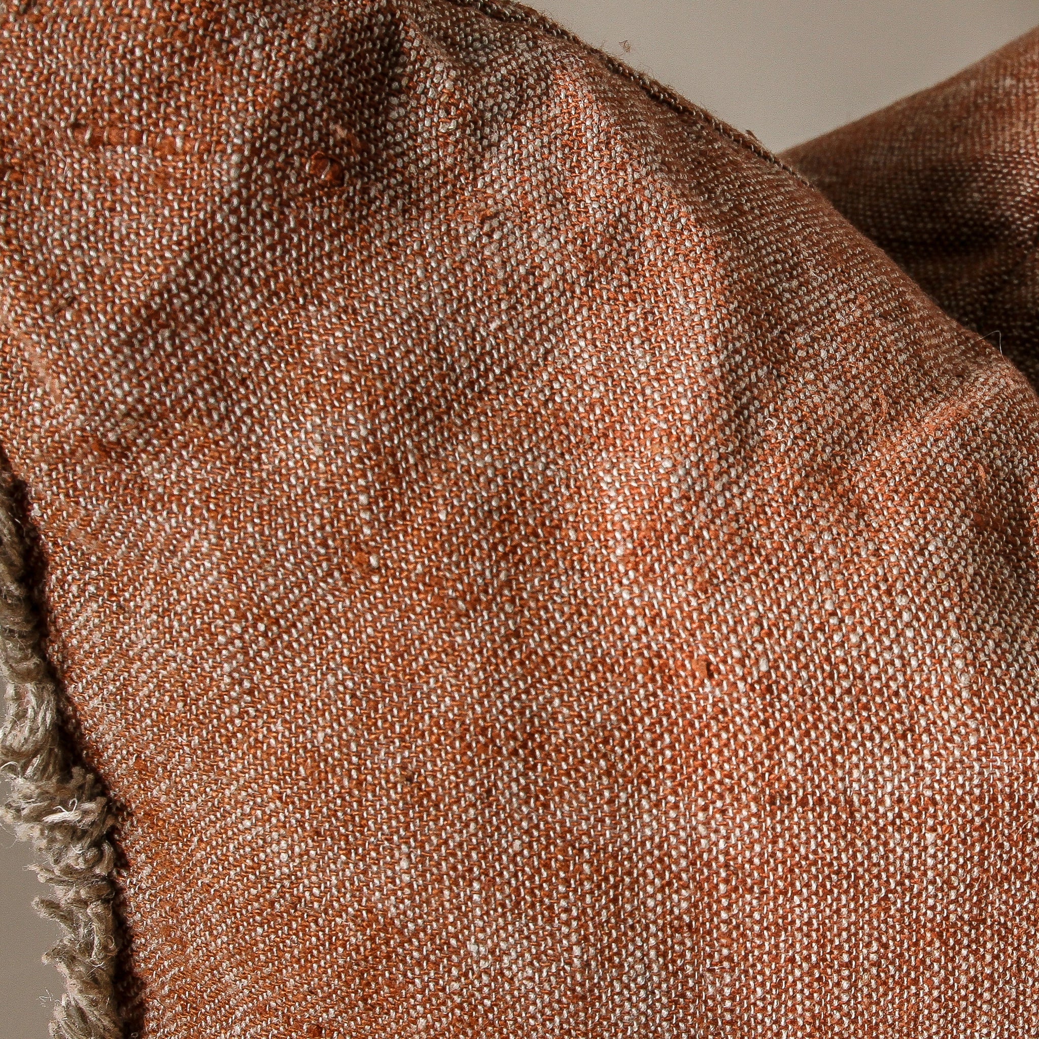 The Tabako Linen Cushion exudes artisanal charm with its handwoven linen and rich, tobacco-toned base.