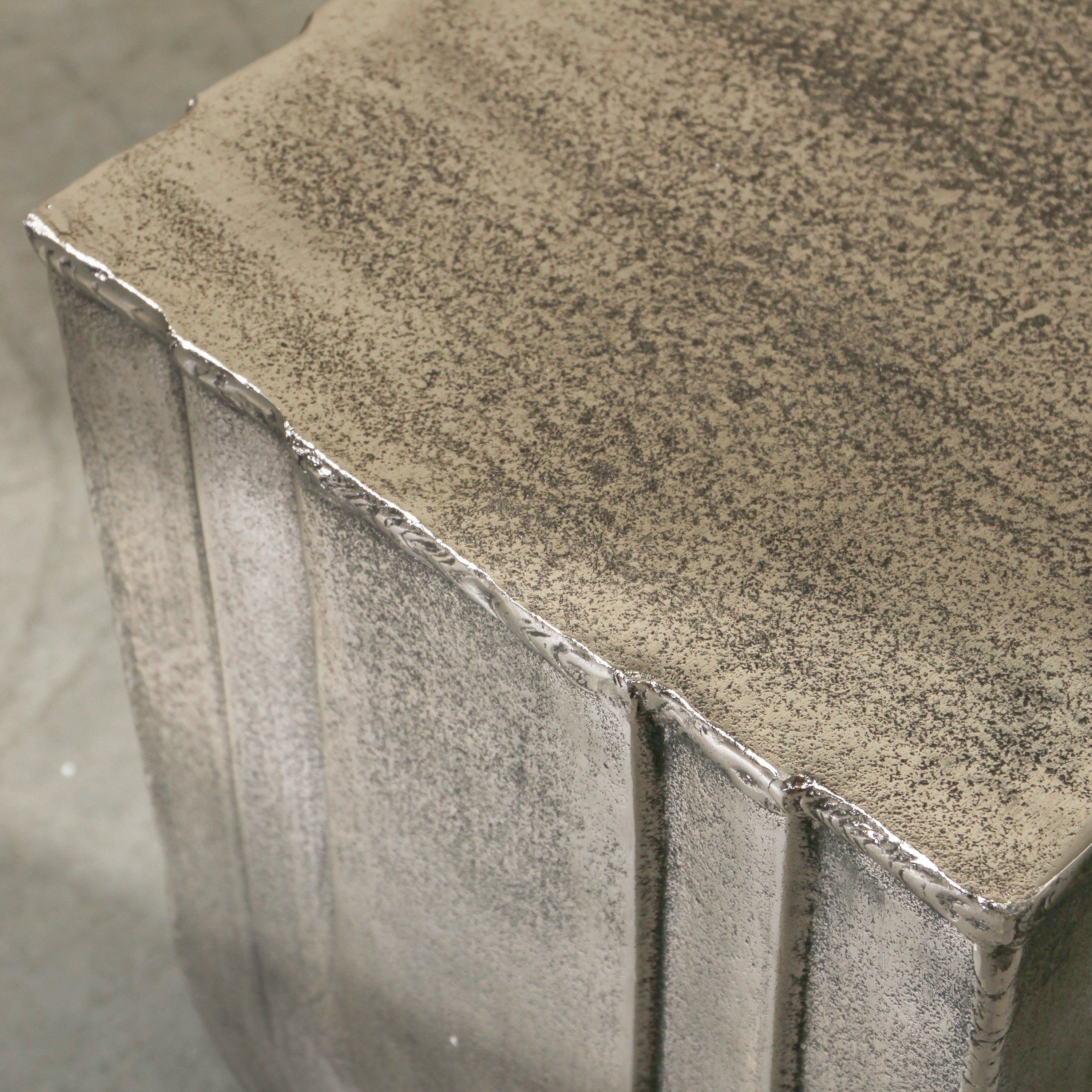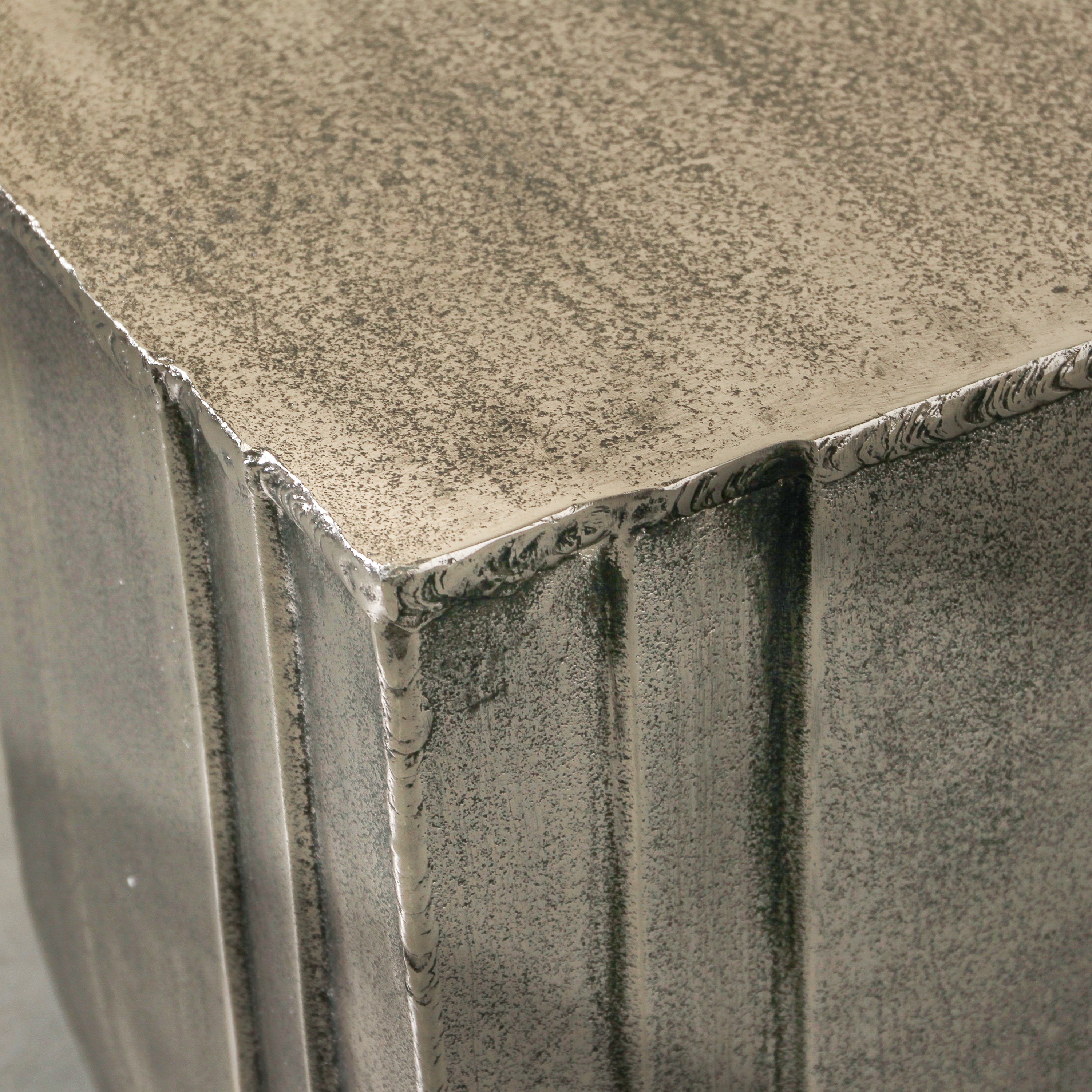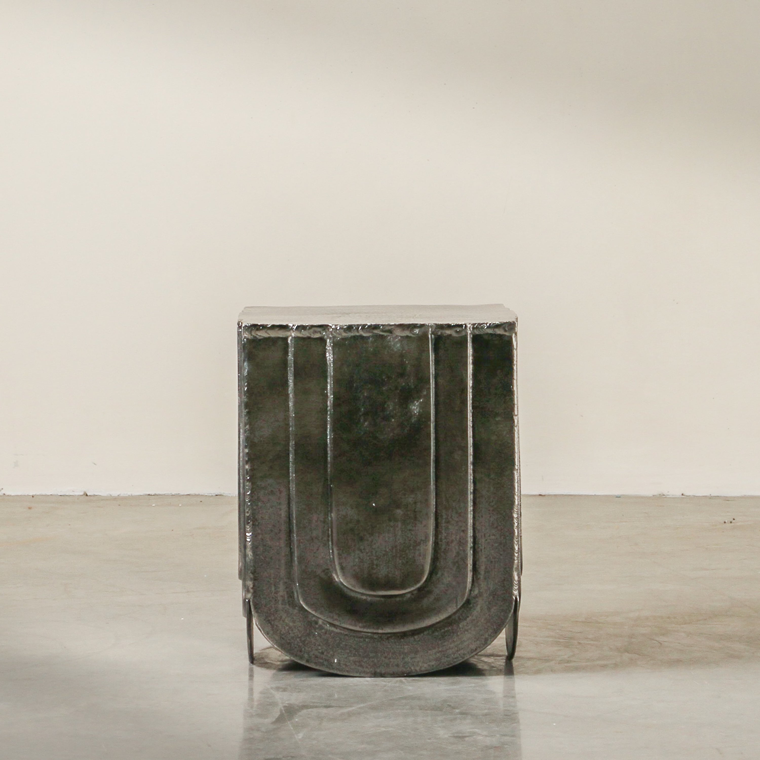 A quiet study in contrast and curve, the Vesper Side Table draws from classical motifs—its base shaped like an inverted arch, soft and grounded, lifting toward a sculptural square top. The finish is layered in antique gold with a blackened patina, giving it the timeworn depth of something unearthed, not newly made. Pair beside a sculptural lounge or float it between two occasional chairs. Let it shine with minimal styling—a single ceramic vessel or a stacked book with a natural stone object is all it needs.