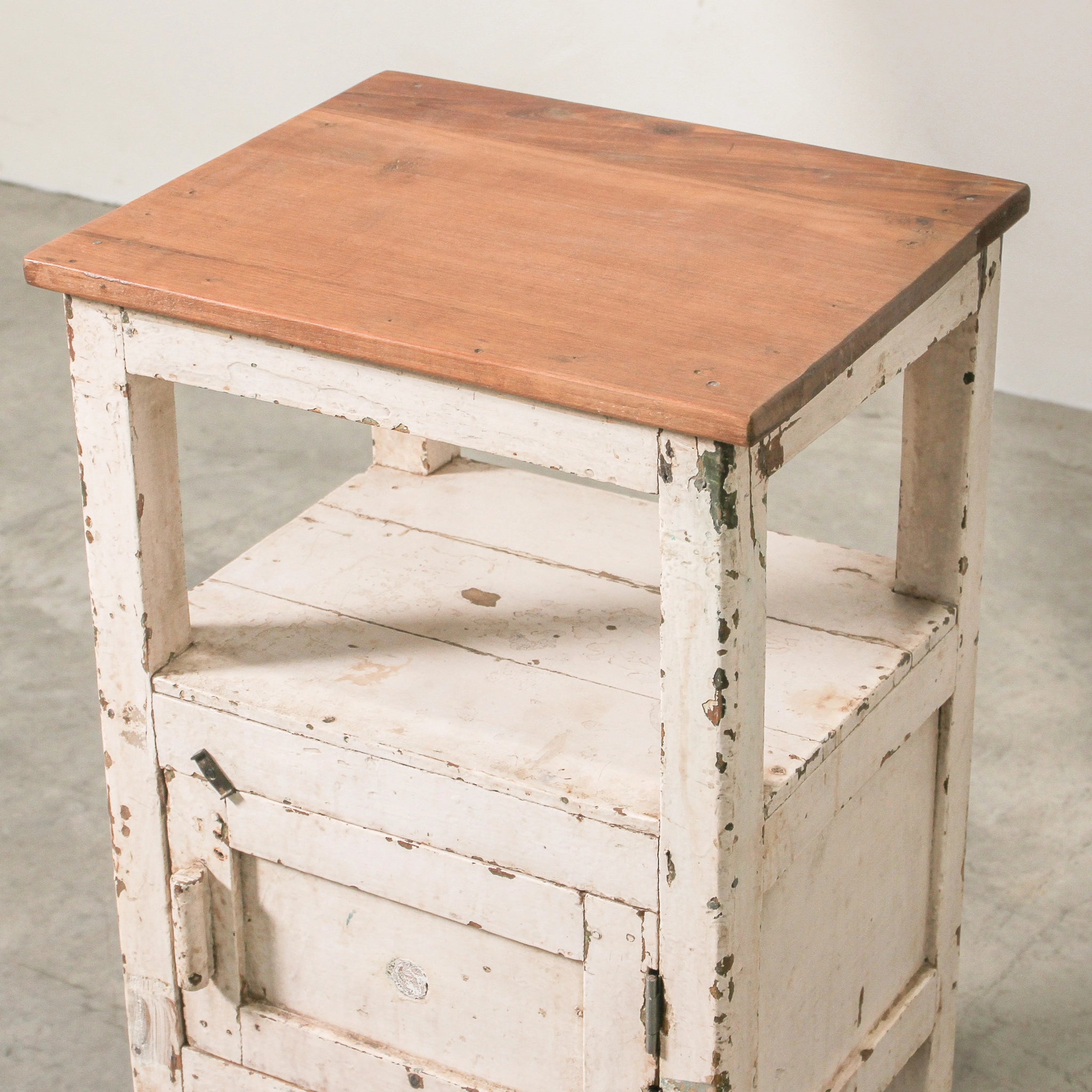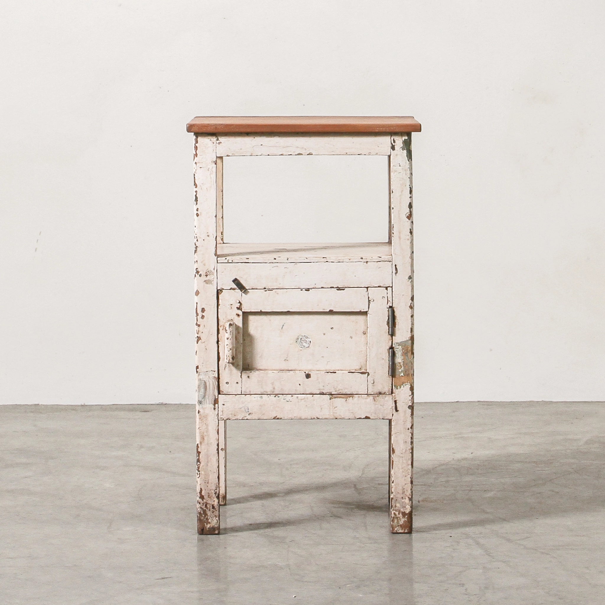 Perfect for layering, styling, or standing alone, this vintage Indian bedside table is handcrafted from solid teak and finished with a natural wax that enriches its aged grain. With 60–80 years of Rajasthani history, it retains original fittings and a warm patina that speaks of its past life as a storage cabinet. Compact and versatile, it serves beautifully as a bedside, hallway cabinet, or accent piece in modern interiors.
