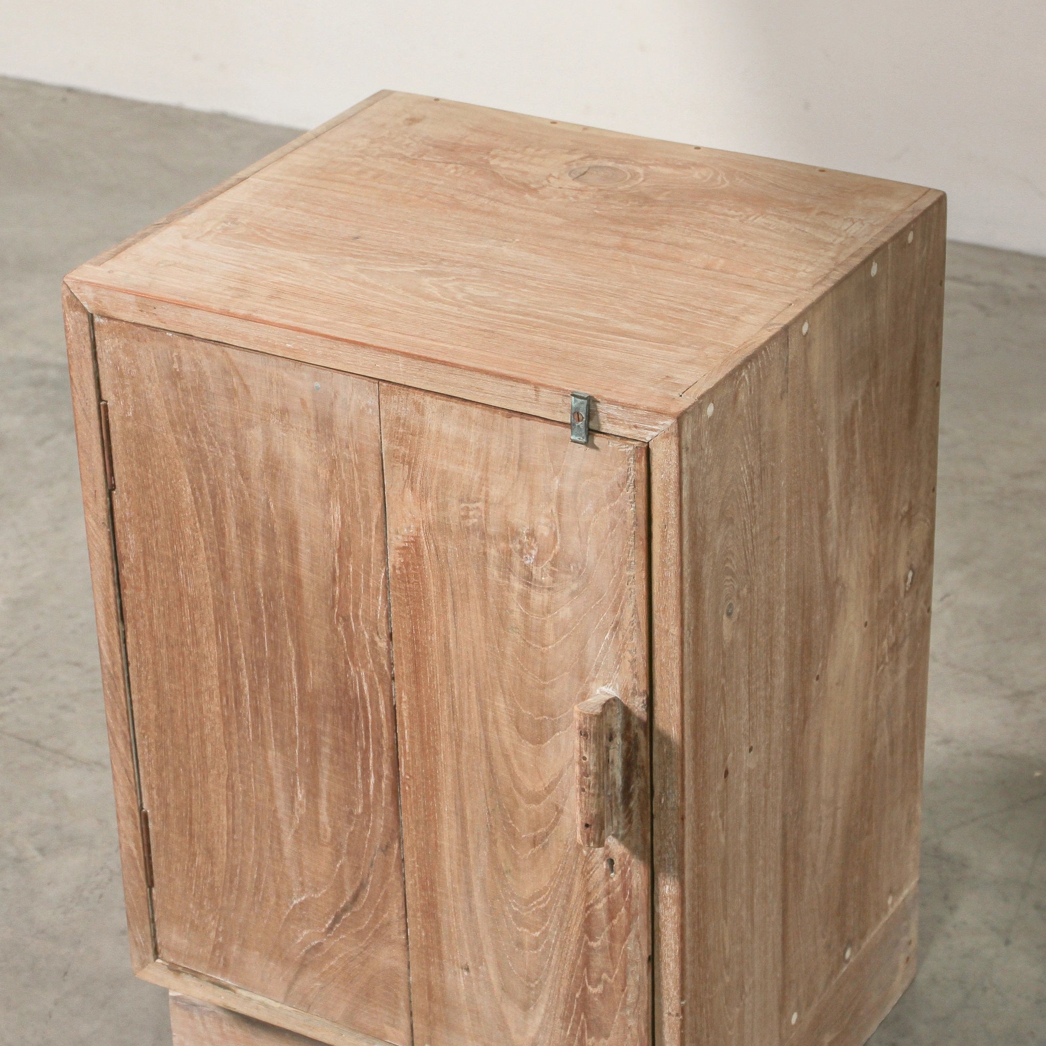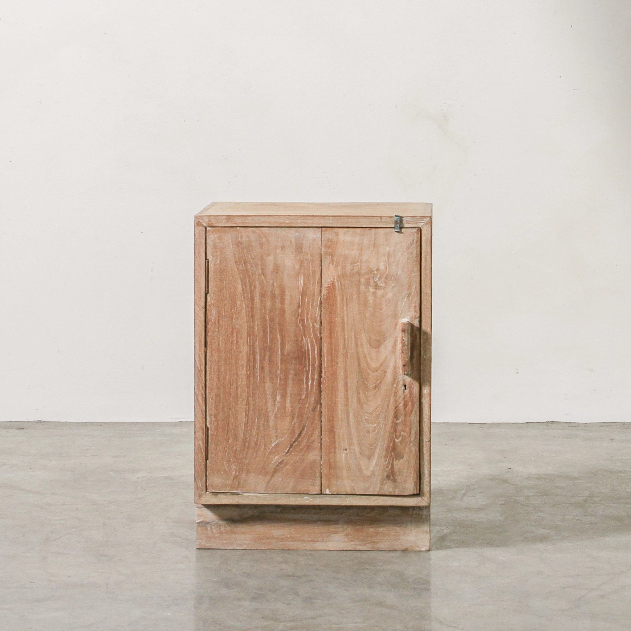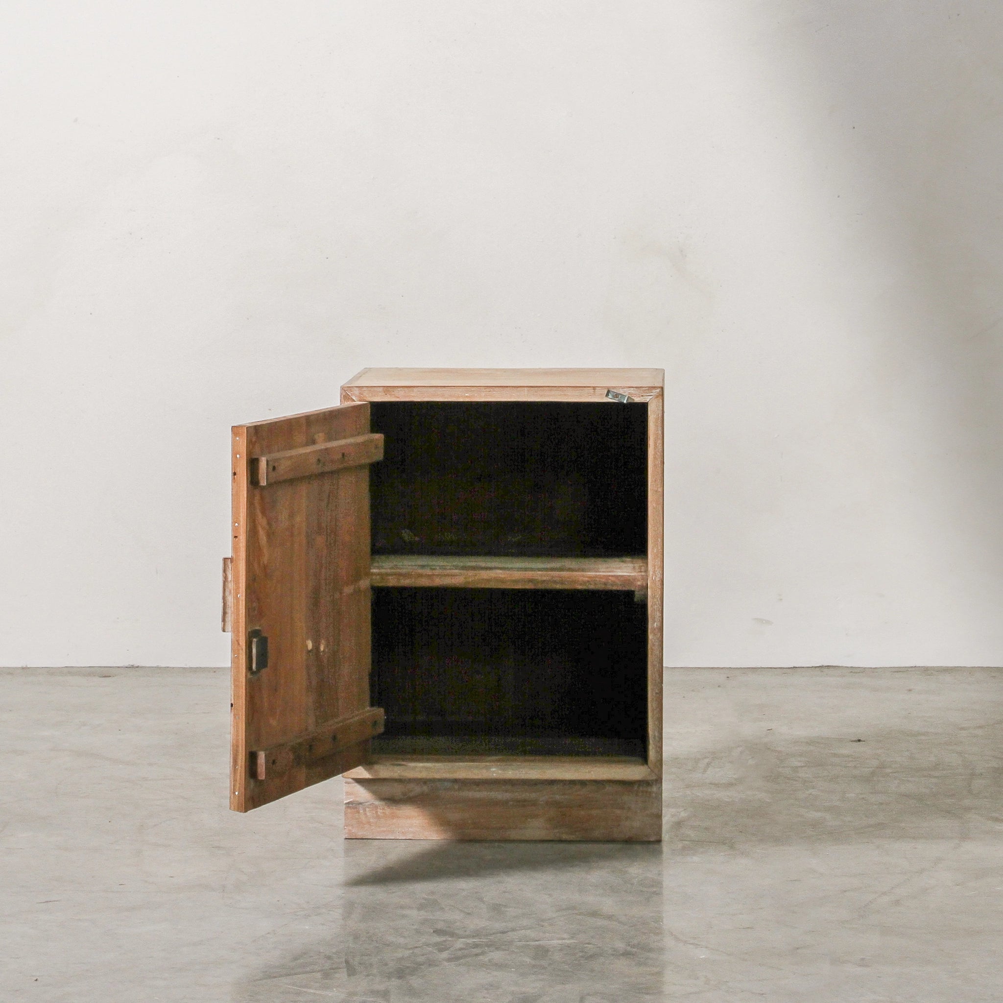 Infused with warmth and tradition, this vintage Indian bedside table is handcrafted from solid teak and finished with a natural wax that highlights its aged patina. Carrying 60–80 years of history from Rajasthan, it retains its original fittings and timeworn surface. Compact yet practical, it serves perfectly as a bedside, occasional cabinet, or small accent piece, bringing both cultural character and everyday utility to the home.
