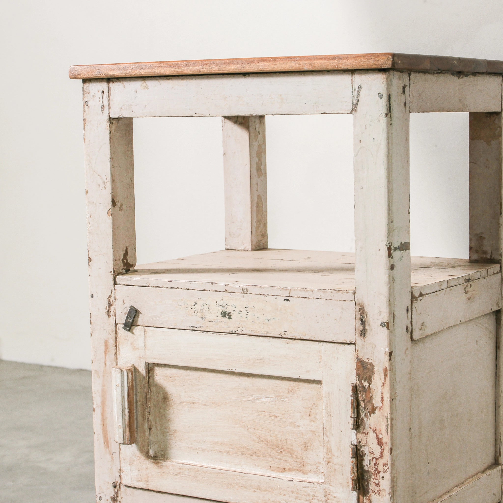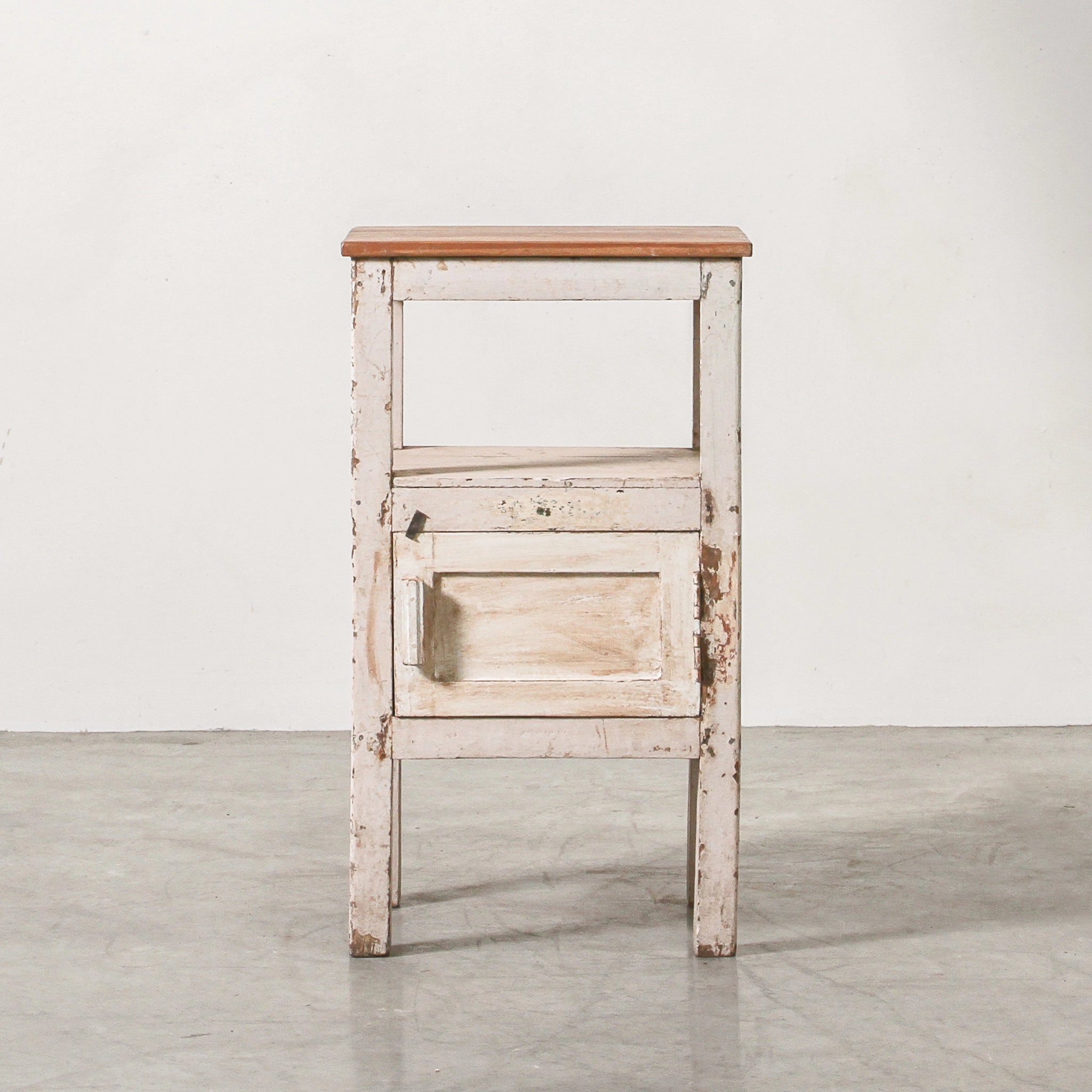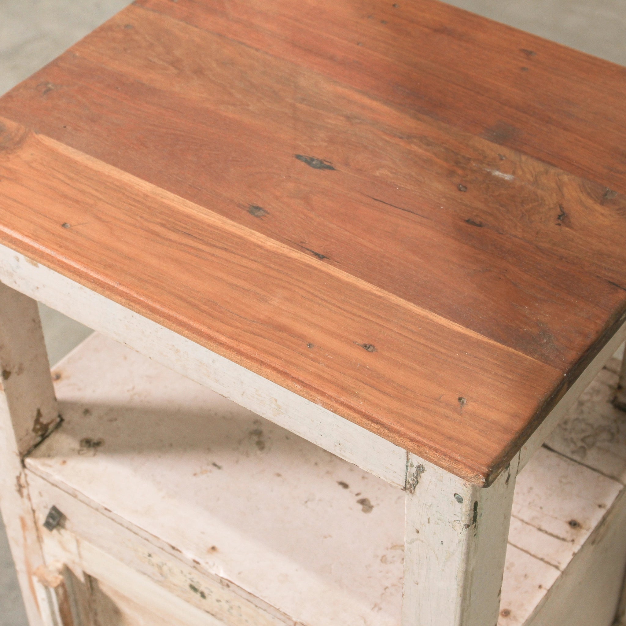 Perfect for layering, styling, or standing alone, this vintage Indian bedside table is handcrafted from solid teak and finished with a natural wax that enriches its aged grain. With 60–80 years of Rajasthani history, it retains original fittings and a warm patina that speaks of its past life as a storage cabinet. Compact and versatile, it serves beautifully as a bedside, hallway cabinet, or accent piece in modern interiors.