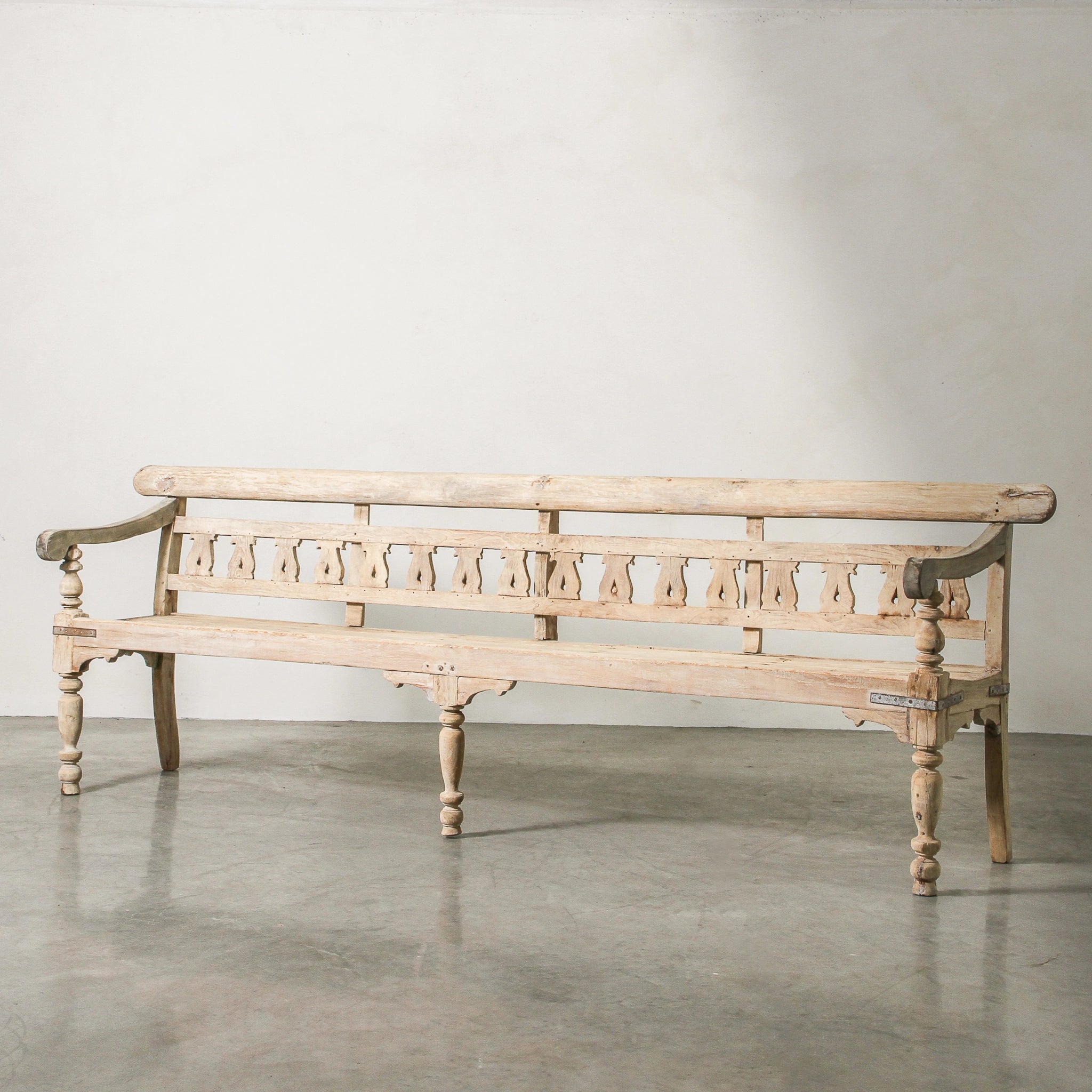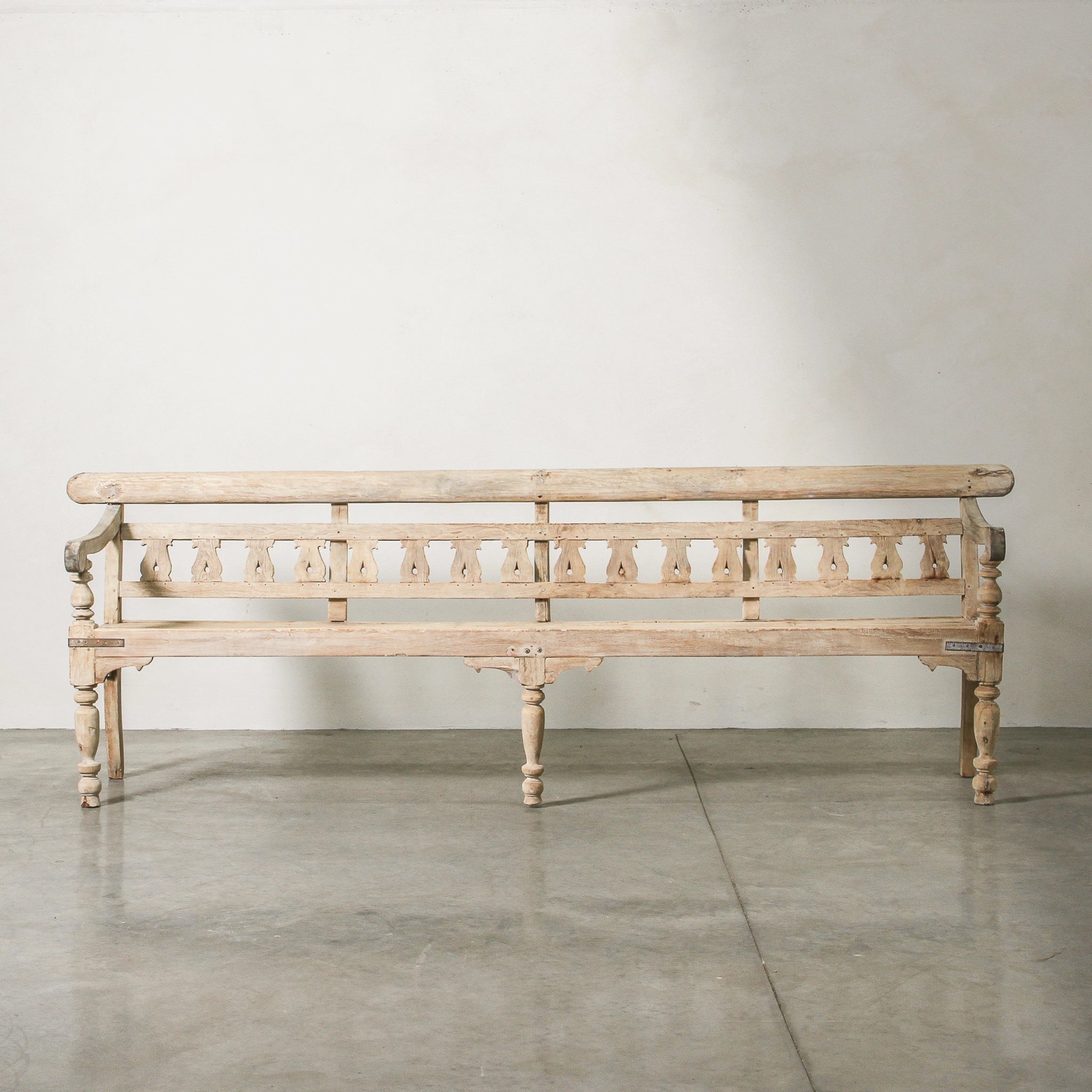 Designed to bring depth and story to your home, this vintage Indian bench is crafted from solid teak and finished with a natural wax that highlights its 60–80 years of age. Originating from Gujarat, it combines robust proportions with the patina of time, making it both functional seating and a statement piece. Perfect for a dining table, entryway, or covered outdoor space, it layers heritage and authenticity into modern living.