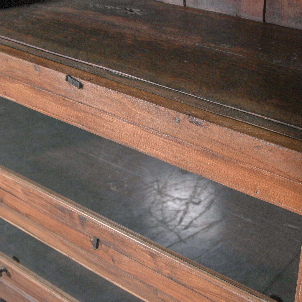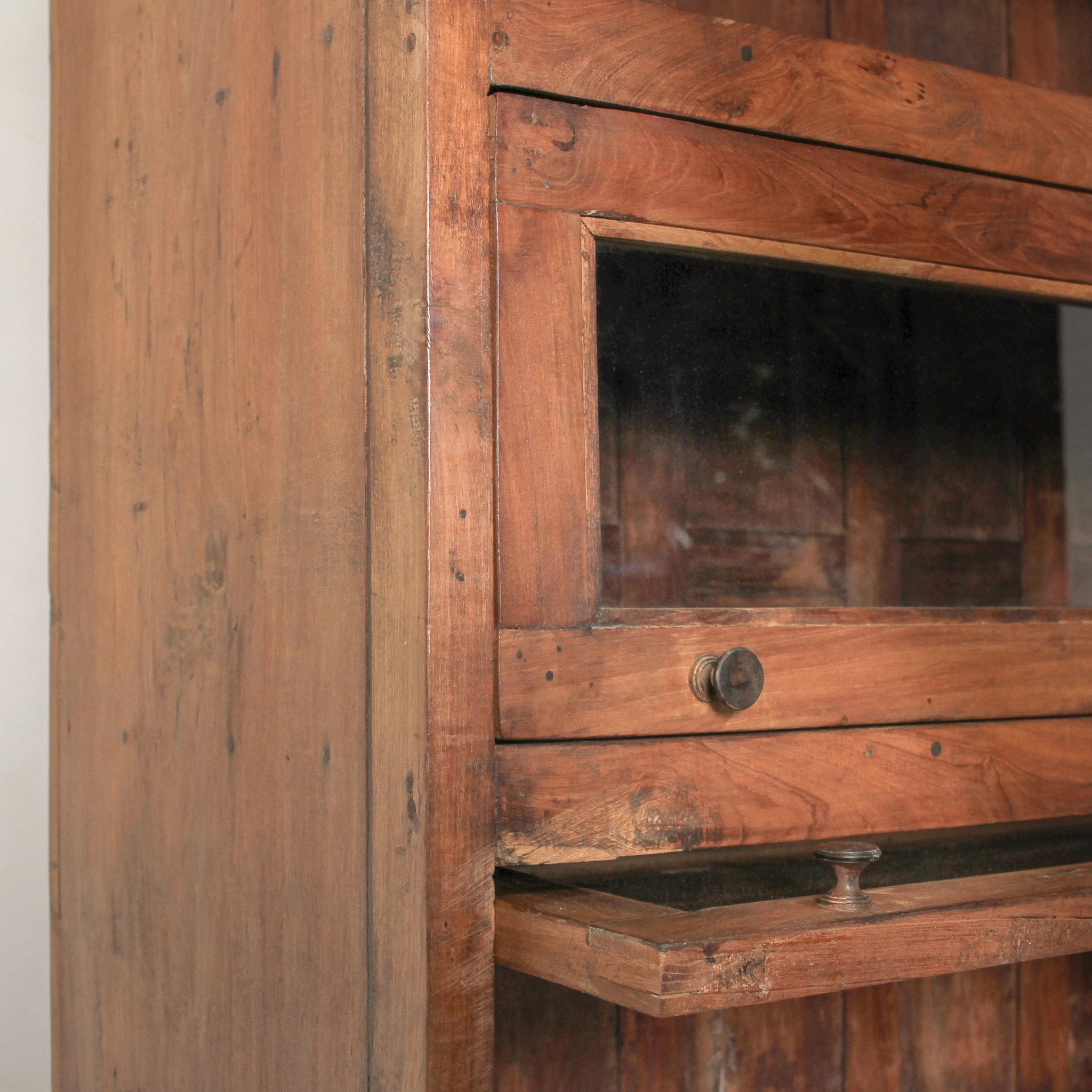Steeped in heritage and craftsmanship, this vintage Indian glass almirah is handcrafted from solid teak and finished with a natural wax that highlights its patina. Its tall proportions and glass-panelled doors make it ideal for storing and displaying ceramics, books, or linens, while its 60–80 years of Rajasthani history bring authenticity to any setting. Retaining its original fittings, it stands as both a practical storage solution and a cultural statement piece.