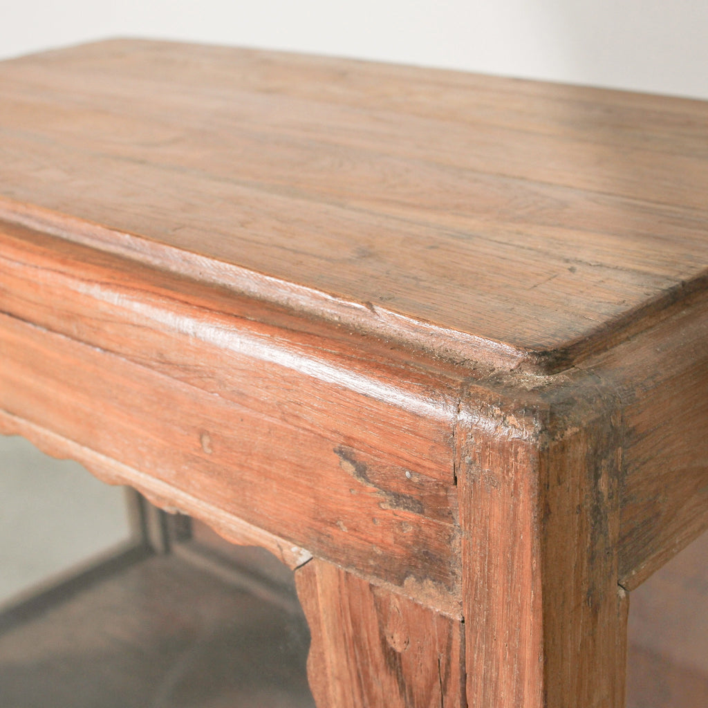 Echoing a history of artisanship, this vintage Indian glass almirah is crafted from solid teak and finished with a natural wax to highlight its 60–80 years of age. Compact in size yet full of character, it features glass-panelled doors and original fittings, making it ideal for displaying tableware, books, or treasured objects. Its versatile scale ensures it fits seamlessly into living rooms, bedrooms, or hallways, layering story and practicality into the home.