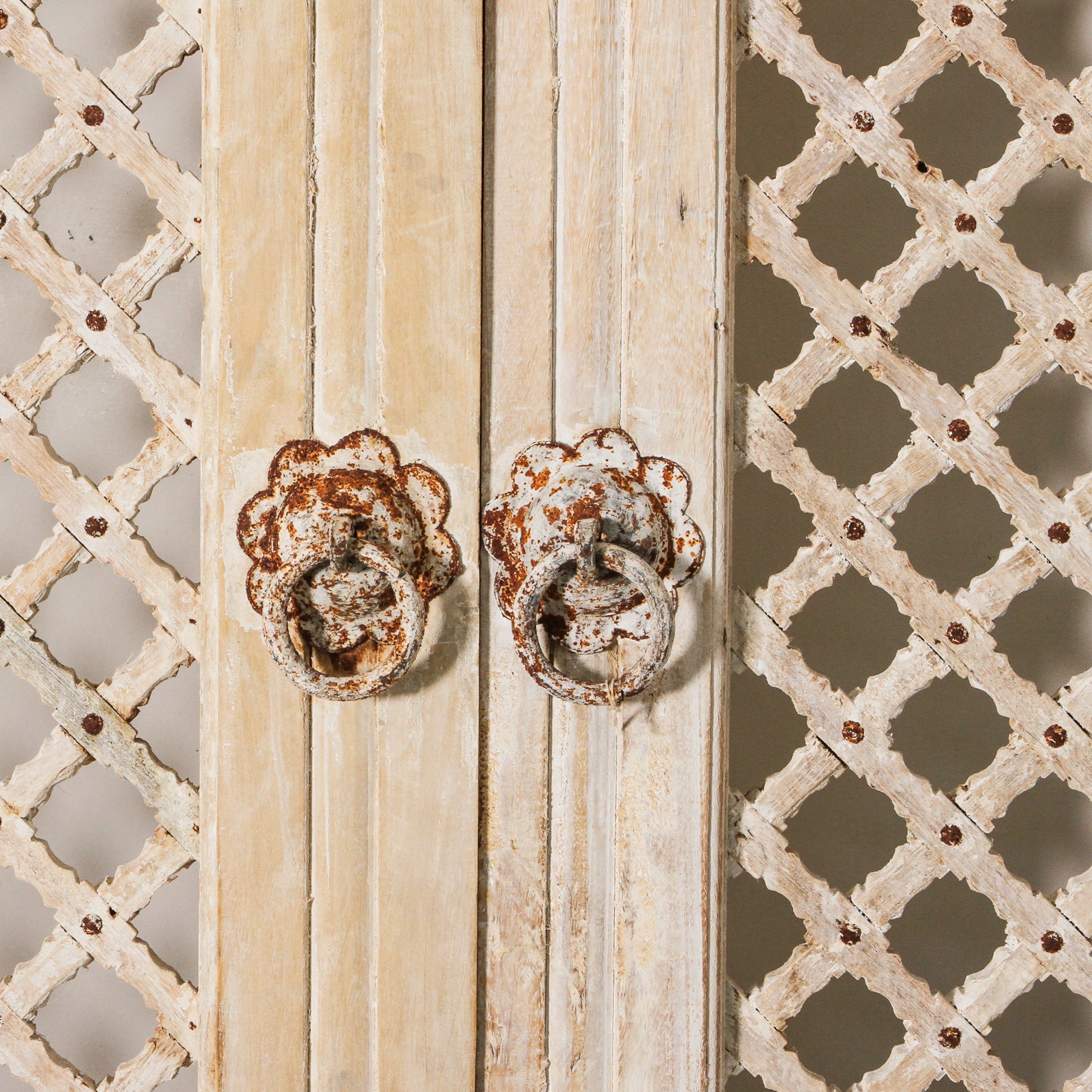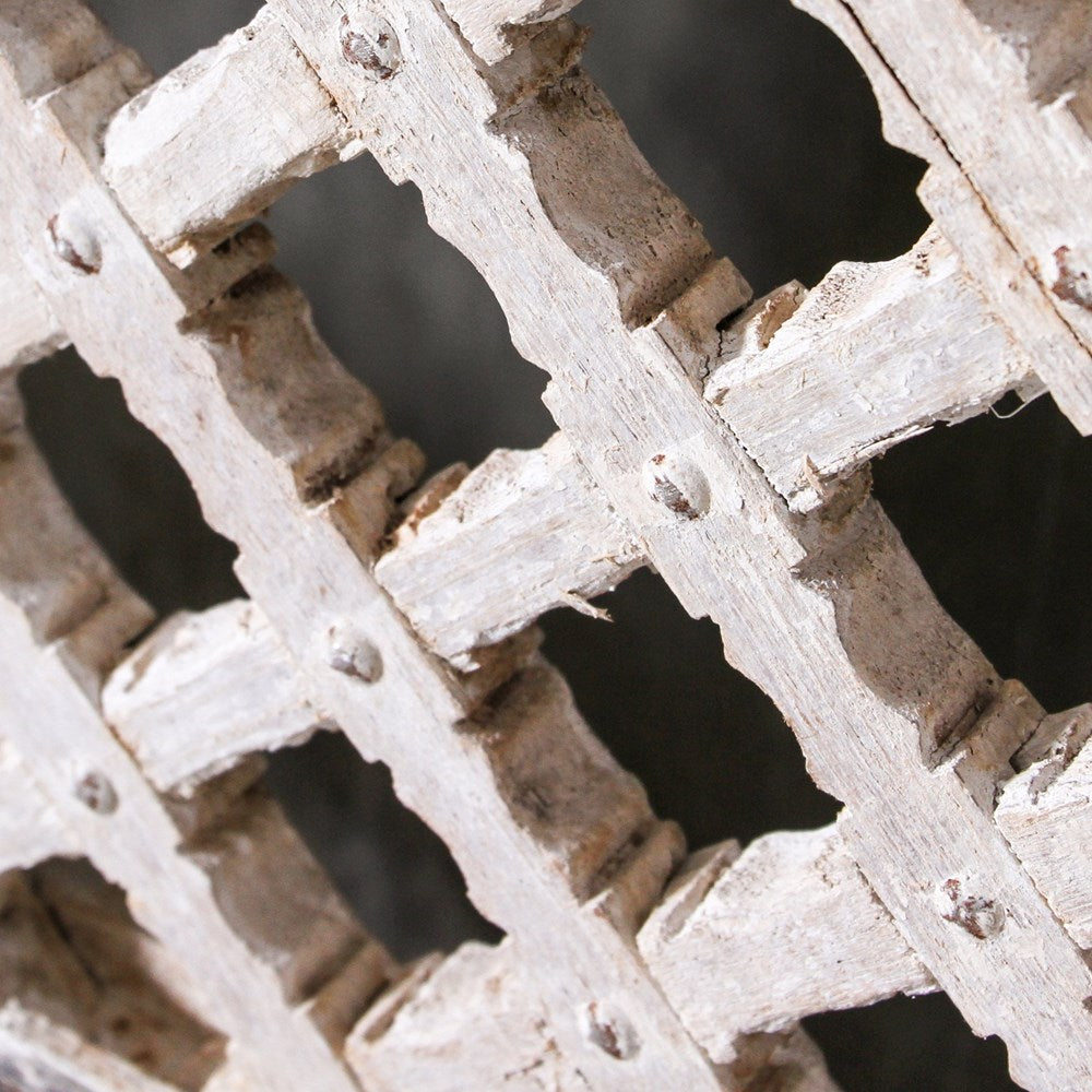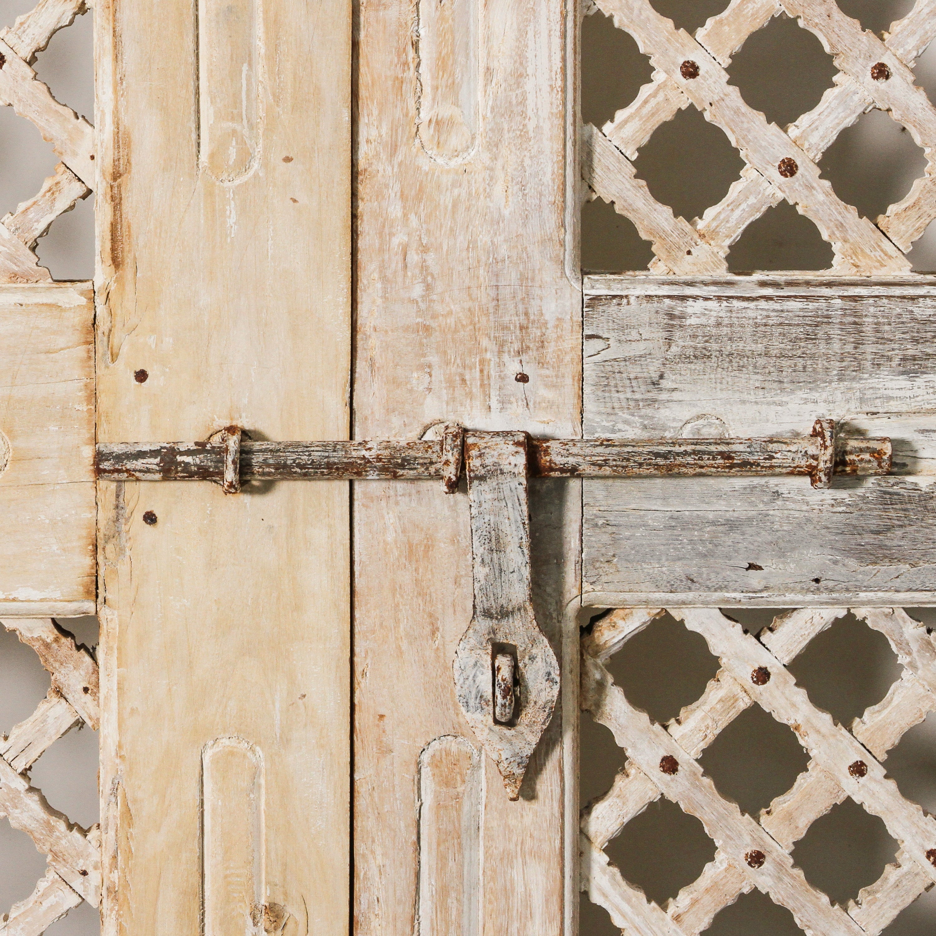 Salvaged from Rajasthan, a state in India's north, this generations-old piece was originally the old door from a village haveli of the region. It has been crafted from solid teak wood and comes complete its original hardware, traditional jali and paintwork intact. It would make a stunning piece of wall d?cor, just as beautiful as any piece of art, or use in your home as it was originally intended as a statement door, either indoors or out.