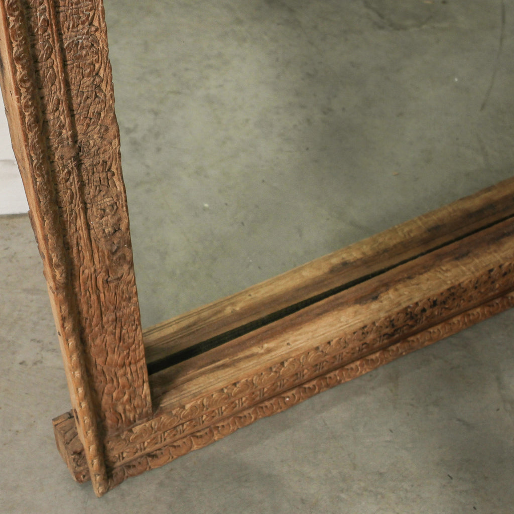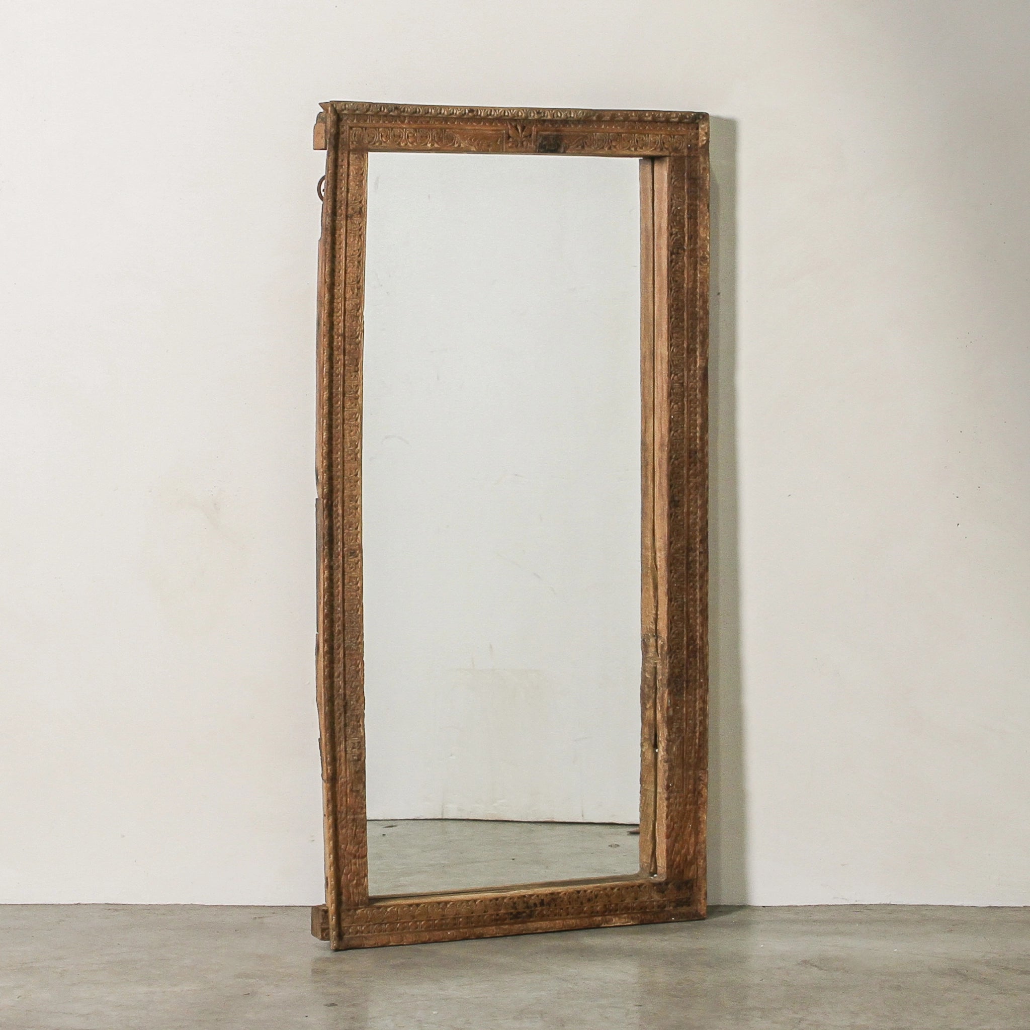 A timeless piece, rich with cultural detail, this vintage Indian mirror is framed in solid teak reclaimed from old cabinetry. With a wax finish that highlights its natural grain and 60–80 years of history, it brings warmth and authenticity to modern interiors. Generous in scale, it can be styled as a statement wall piece or leaned casually against a wall to reflect light and create depth.