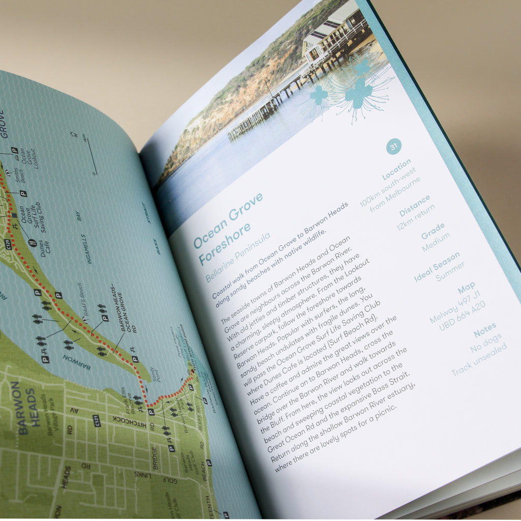 The book features walks in and around Sydney, Canberra, Melbourne, Adelaide, Perth, Brisbane and Hobart.