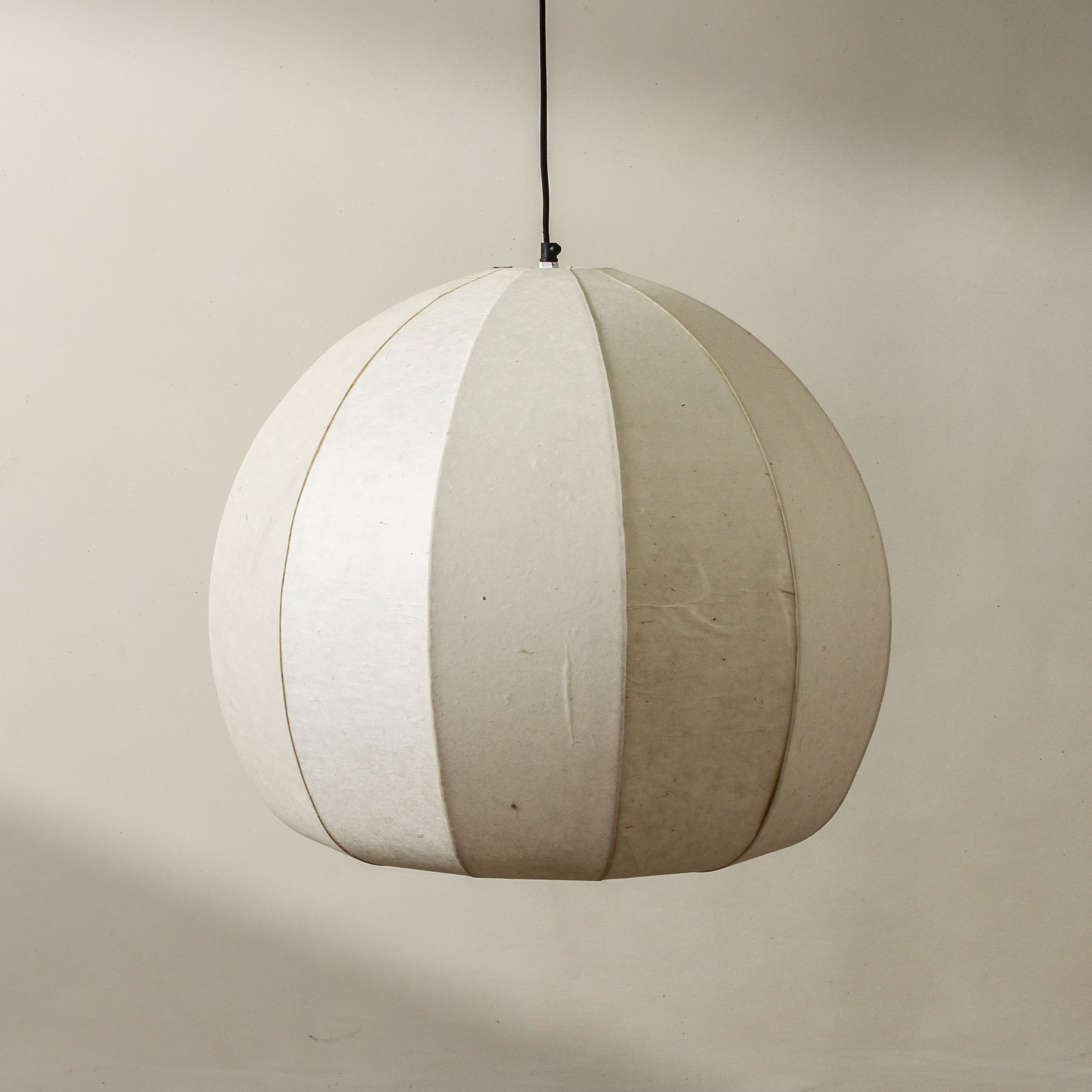 The Whisp Pendant is perfectly round — a gentle orb that calls to mind the moon, or the quiet strength of the sun behind paper-thin clouds. Crafted from hand-formed paper, its translucent surface diffuses light with a dreamlike softness. Suspended alone or in clusters, it brings calm and clarity to bedrooms, nurseries, or layered in lofty stairwells.